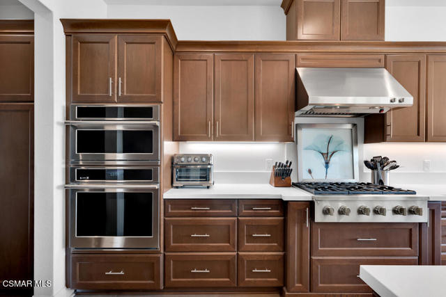 An exquisite home that elevates your lifestyle! Location, location on this premium view lot perfectly situated on a cul-de-sac. Designed for Single-Story living with the option of an expansive upstairs bonus room with an additional office space and a half bath.Imagine waking up each morning to the soft glow of the sun rising over the hills, filling your home with natural sunlight. The views from this premium oversized lot is a daily reminder why you are choosing this extraordinary senior gated community, The Grove, a place where serenity and luxury blends seamlessly. Make your way to the heart of the home, the culinary masterpiece of a kitchen, with elaborate sized quartz counters, plenty of gathering space for friends. Rich maple stained cabinets offsets the quartz countertops, Extended beautiful lower cabinets for extra storage space with quartz countertops too. GE Monogram professional appliances with 42'' built-in side by side refrigerator, six burner range with hood, and two wall ovens: a 30-inch convection oven below, and an Advantium combination microwave/convection oven on top. ... There are lots of large windows bringing in light with high spacious ceilings. The great room is comfortable and spacious opening up with beautiful slider doors to the covered patio with fireplace bringing the outdoors as part of your living area. Luxury plank vinyl flooring in a rich coco classic finish throughout the home. The primary suite is spa-like with so many amenities, Beautiful expansive quartz counters with dual vanities, walk-in shower and a spacious walk in closet. Recessed LED lights with dimmers throughout the home sets the mood for your lighting just the way you like it.Two additional nicely sized bedrooms downstairs. Other amenities include a whole house LiifeSource water filtration system, Tankless water heater with remote for instant hot water. Smart Home technology, Built-in Fire sprinklers and alarm system. Low maintenance landscaping and artfully hardscaped in the backyard makes this home effortless so you can enjoy more and maintain less. This is more than a home this is a lifestyle. some of the amenities, include, 5000 sq. ft. clubhouse with so many things to do, state of the art gym, culinary kitchen, meeting rooms, resort style pool and spa, cabanas,pickleball courts, a putting green, two dog parks, walking paths or just amazing bird watching, and an occasional para glider .Whether you are enjoying the stunning views, the vibrant community, or the unparalleled luxury inside, this is the home you have been waiting for. Camarillo was voted by National Geographic as one of the top 10 mediterranean climates in the world. Centrally located to amazing restaurants, country clubs and shopping. As I always say Ahhhh Camarillo!Interested in this Listing?