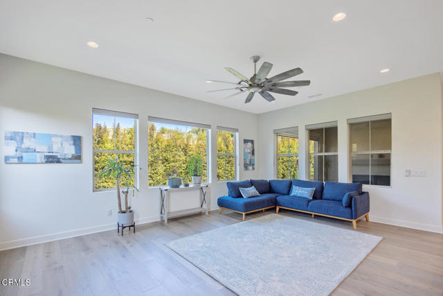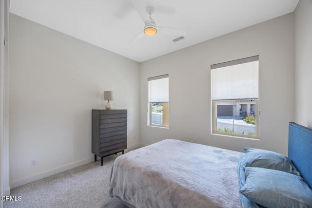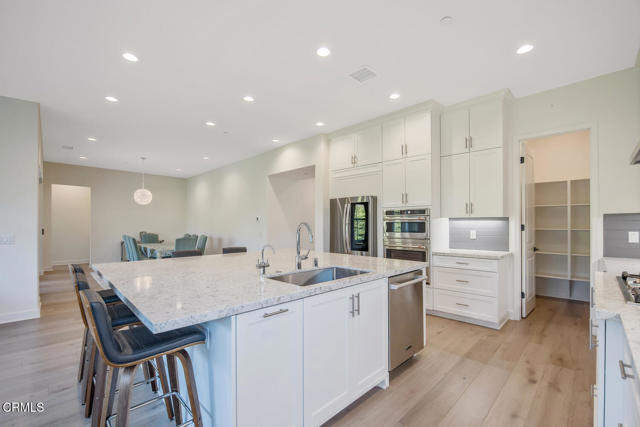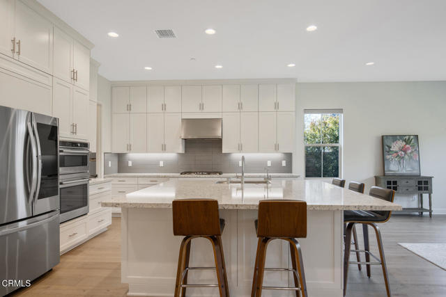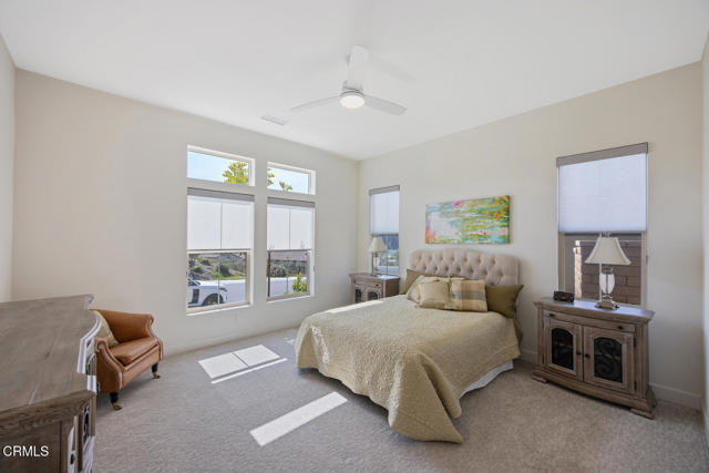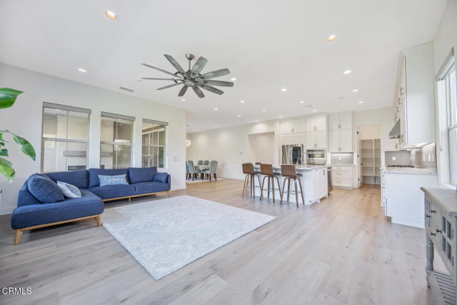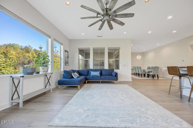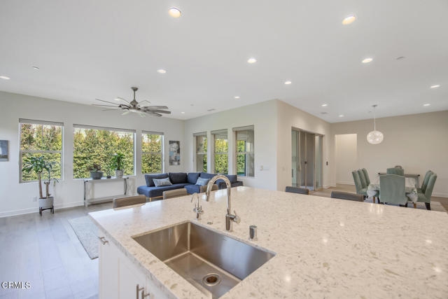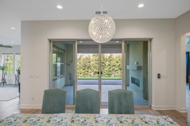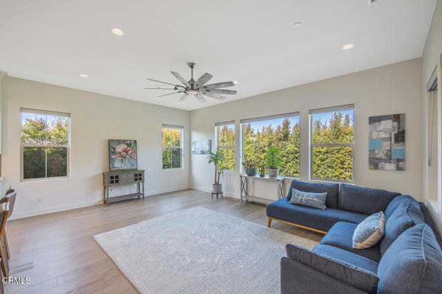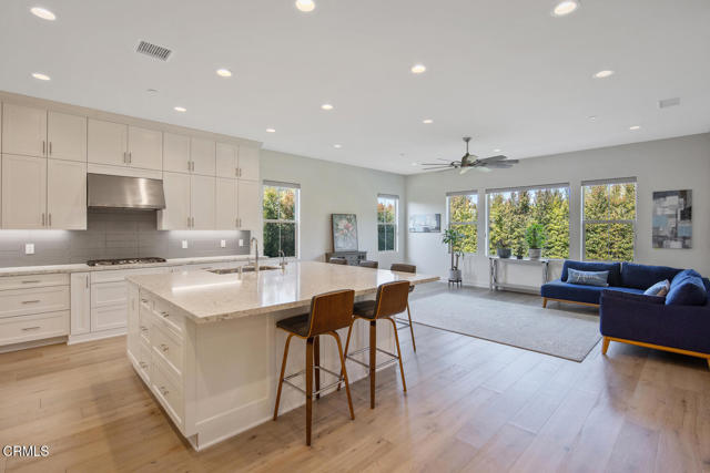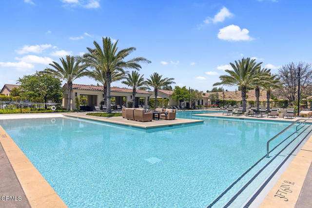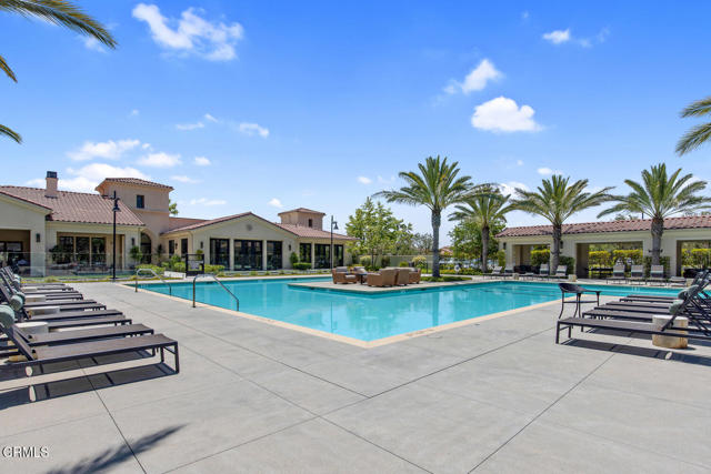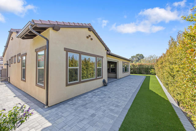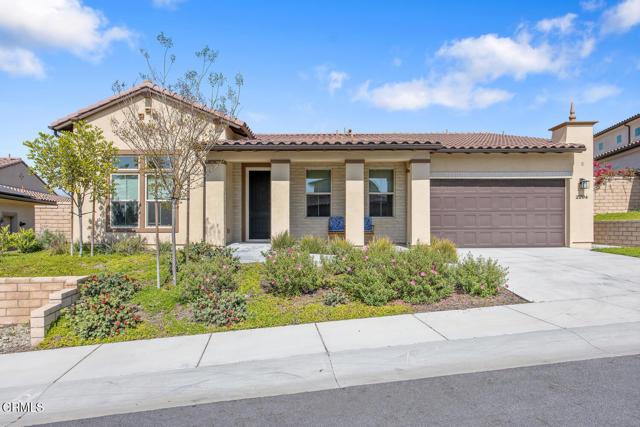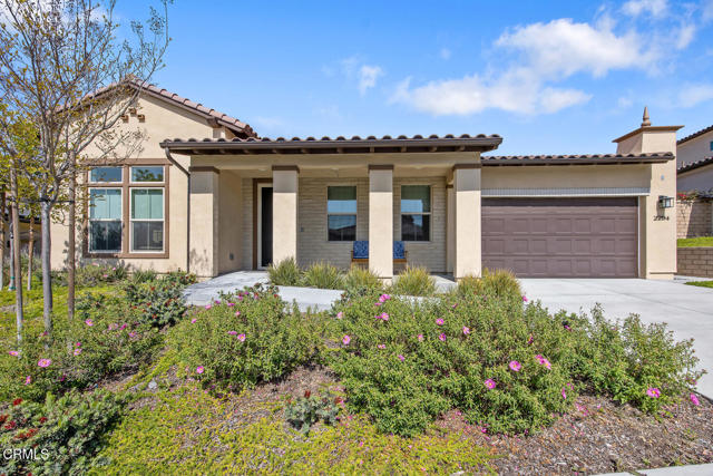 Welcome to this stunning Flora Residence 1, a rarely available single-story home in The Grove, Camarillo's premier 55+ active adult community! With over 2,400 sq. ft., this spacious and thoughtfully designed home offers 3 bedrooms, 3 bathrooms, and an inviting open-concept floorplan perfect for modern living.The gourmet kitchen is a chef's dream, featuring a large quartz island, stainless steel appliances, white soft-close cabinetry, a walk-in pantry, and no-touch faucets. The expansive living room boasts wall-to-wall windows, flooding the space with natural light, along with a ceiling fan for added comfort. Enjoy hosting in the formal dining room, or step outside through double sliding doors to your covered patio with an outdoor fireplace--the perfect place to unwind and take in the serene views.The primary suite is a retreat of its own, complete with a walk-in closet and a luxurious en-suite bathroom with a roll-in shower. Two additional well-sized bedrooms include one en-suite with a combination tub/shower, while the other has a walk-in shower. A spacious laundry room with a sink and storage cabinetry adds to the home's functionality. The backyard is a private oasis, featuring highest-grade artificial grass, beautiful pavers, and full privacy hedges for a lush, low-maintenance retreat.Additional features include 2-car garage with an EV charger, Ring doorbell, keyless entry and tankless water heater.Resort-Style Community Amenities: Living at The Grove means access to exclusive walking trails lined with fruit trees, a clubhouse with a walk-in lap pool, spa, and furnished cabana areas, plus a state-of-the-art gym, library, pickleball & bocce ball courts, putting green, ping pong, outdoor fireplaces, BBQ areas, and two dog parks! Enjoy a vibrant social calendar with classes, events, and gatherings.Don't miss this exceptional opportunity to own a rarely available Flora model in this highly sought-after community. Welcome Home!Interested in this Listing?