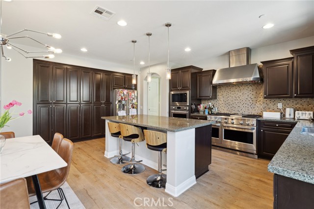 Exceptional 5-bedroom (+ bonus room), 4-bathroom residence located in the highly desirable Village at the Park neighborhood in Camarillo. Built in 2015, this expansive 3,529 sq. ft. home offers a thoughtful open-concept design with premium finishes and an ideal layout for both everyday living and entertaining. The gourmet kitchen features a Monogram 6-burner range with griddle, triple ovens, granite countertops, an oversized island, Bosch dishwasher, decorative backsplash, and abundant cabinetry. The living and family rooms are enhanced by custom accent walls and two gas/electric fireplaces. A modern Spanish-style staircase, recessed lighting, and plantation shutters add timeless elegance throughout. The spacious primary suite includes dual vanities, a soaking tub, a large walk-in shower, and two custom walk-in closets. Additional bedrooms include a versatile bonus room ideal for work or play. All bathrooms are finished with upgraded tile and designer details. Modern conveniences include dual-pane windows, energy-efficient HVAC, a smart thermostat, 240V EV charging capability, and a two-car garage with built-in storage. The backyard offers a peaceful retreat with hardscaping, a nearly new above-ground spa, a dedicated side yard with play area, and a mature avocado tree producing seasonal fruit. Residents of Village at the Park enjoy access to resort-style amenities including pools, spa, clubhouse, sports parks, and playgrounds. Located minutes from beaches, shopping, dining, walking trails, and major commuter routes.Interested in this Listing?