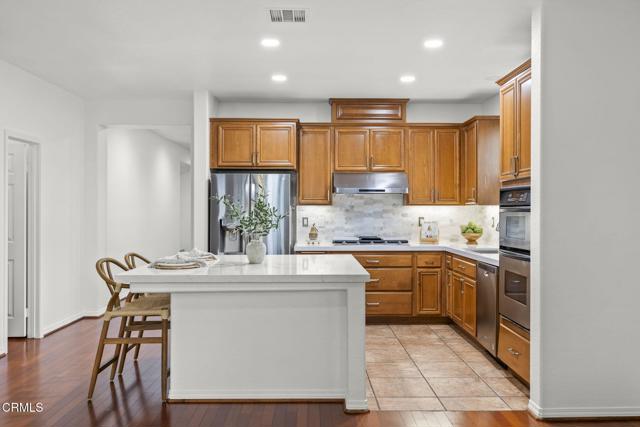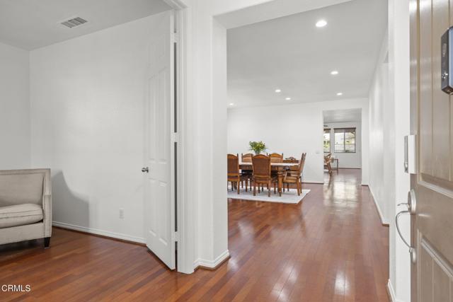 Look no further--this stunning single-story home, ideally situated on a corner lot in a quiet cul-de-sac within the prestigious Village at the Park community, is now on the market!Freshly painted throughout, the home offers a clean, neutral canvas ready for your personal touch. Featuring 3 bedrooms plus a spacious front office, this thoughtfully designed layout provides flexibility for work, guests, or a growing family.Step into the formal living and dining areas, highlighted by engineered hardwood flooring and multiple windows that bathe the space in natural light. The open-concept kitchen is a showstopper--complete with a central island, quartz countertops, striking backsplash, stainless steel appliances, and a generous walk-in pantry. The kitchen seamlessly connects to the inviting family room, featuring a cozy fireplace and elegant mantel--perfect for relaxing or entertaining.At the rear of the home, the private primary suite offers a tranquil retreat with a luxurious en suite bathroom featuring double vanities, a soaking tub, separate shower, and walk-in closet. Two additional bedrooms, a full bathroom with dual sinks, and a spacious laundry room complete the interior, leading directly to the attached two-car garage.The backyard is features a tranquil koi pond, covered patio for shade, and a custom built-in double BBQ grill station--ideal for year-round gatherings.What truly sets this home apart is the exceptional curb appeal--with stone accents framing the entryway and a side-positioned driveway and garage that enhance both aesthetics and functionality.Village at the park is known for its beautiful community vibe The neighborhood is known for its clean environment, beautiful parks, and walkability, making it a peaceful place that residents appreciate. The low HOA offers a clubhouse with a fitness center, pools, spas, & more. You also have an elementary school in the neighborhood, YMCA family facility, Pleasant Valley Fields, Village Commons shopping center, and access to the 101 freeway!Interested in this Listing?