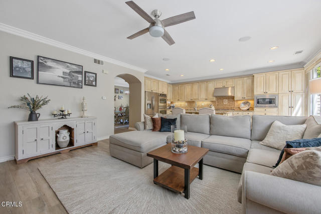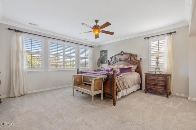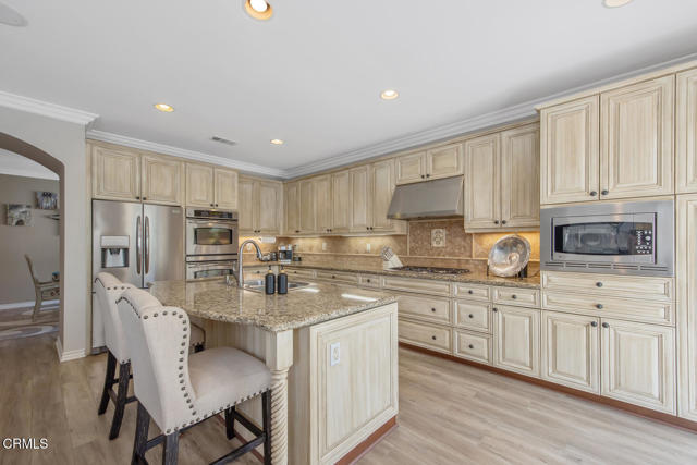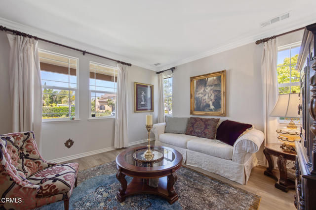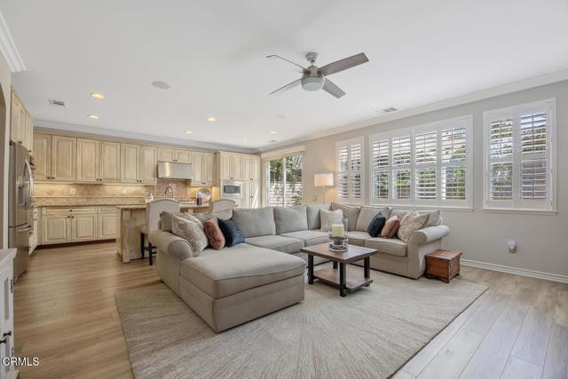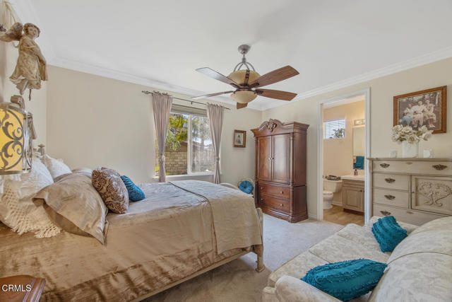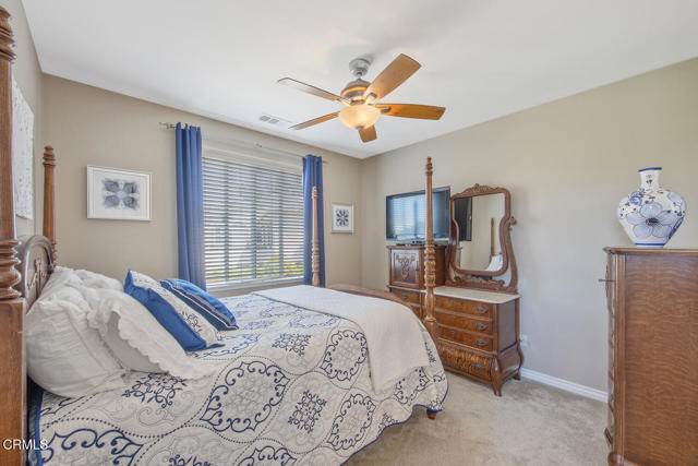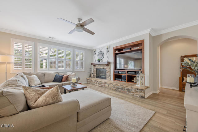 Dream Home in Village at the Park! Tucked away at the end of a peaceful cul-de-sac in one of Camarillo's most desirable neighborhoods. This exquisite 5-bedroom, 4.5-bathroom home offers 3,317 square feet of thoughtfully designed living space, seamlessly combining luxury, comfort, and functionality.The home features an open and airy floor plan enhanced by beautiful flooring and fresh interior and exterior paint. At the heart of the residence lies a spacious chef's kitchen, outfitted with stainless steel appliances--including a double oven, 5-burner stove, and refrigerator--alongside stone countertops, a stylish tile backsplash, and a generous center island ideal for casual meals and entertaining. The kitchen opens to a welcoming family room equipped with a built-in entertainment center, crown molding, appealing shutters, and pre-wired surround sound, perfect for relaxing nights in or hosting guests.A private downstairs bedroom with an adjacent full bathroom offers an ideal setup for guests or multigenerational living. A convenient powder room and laundry room with a sink add to the home's practicality.Upstairs, three spacious guest bedrooms are complemented by two full guest bathrooms, while the oversized primary suite impresses with a large sitting area, shutters, crown molding, an expansive walk-in closet, and a luxurious en-suite bath.Comfort is ensured year-round with a dual-zone air conditioning system, allowing for independent climate control on each level.The beautifully landscaped backyard is an entertainer's paradise, featuring a covered patio, built-in BBQ, cozy gas fire pit, water fountain, and lush greenery. The charming covered front porch provides the perfect spot to unwind and enjoy the serene neighborhood atmosphere.Additional highlights include a 3-car tandem garage with ample storage space and potential RV or boat parking on the side yard.Residents of the Village at the Park community enjoy access to resort-style amenities, including two swimming pools, a fitness center, clubhouse, parks, and RV/boat storage. The home is conveniently located near Rancho Rosal Elementary School, the YMCA, shopping, and offers easy access to the 101 freeway.This rare opportunity to own a truly exceptional home in a premier Camarillo location won't last long.Interested in this Listing?