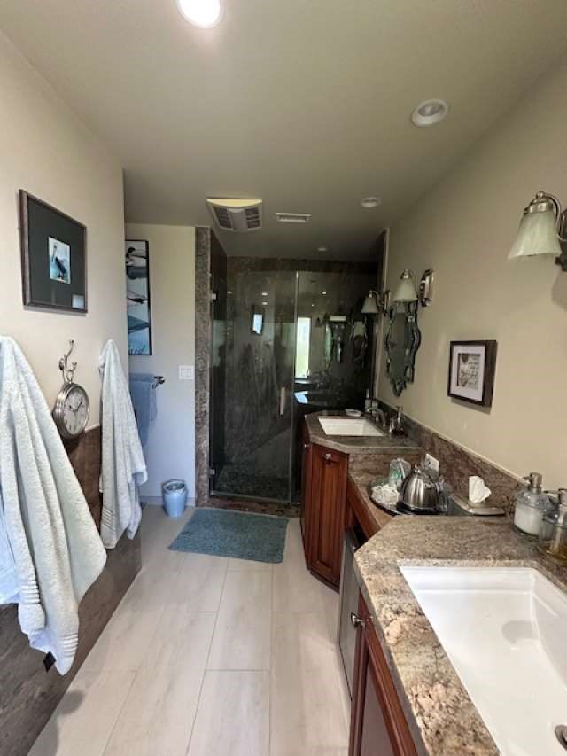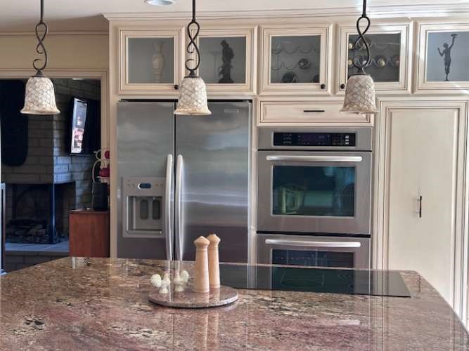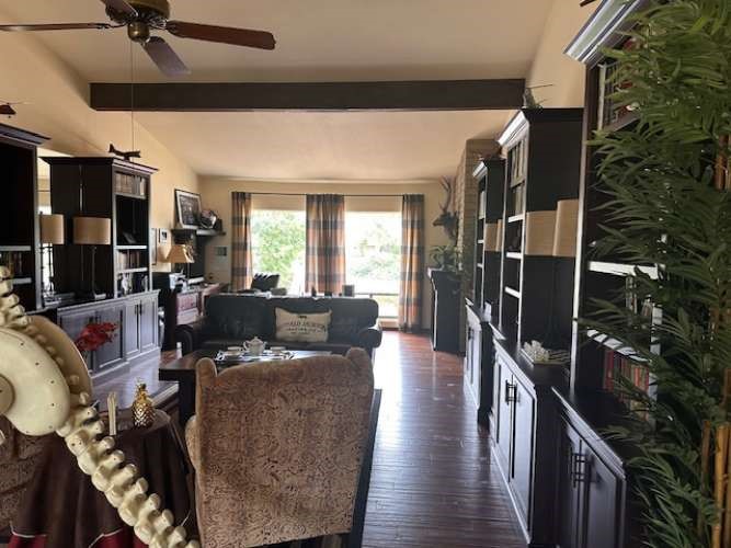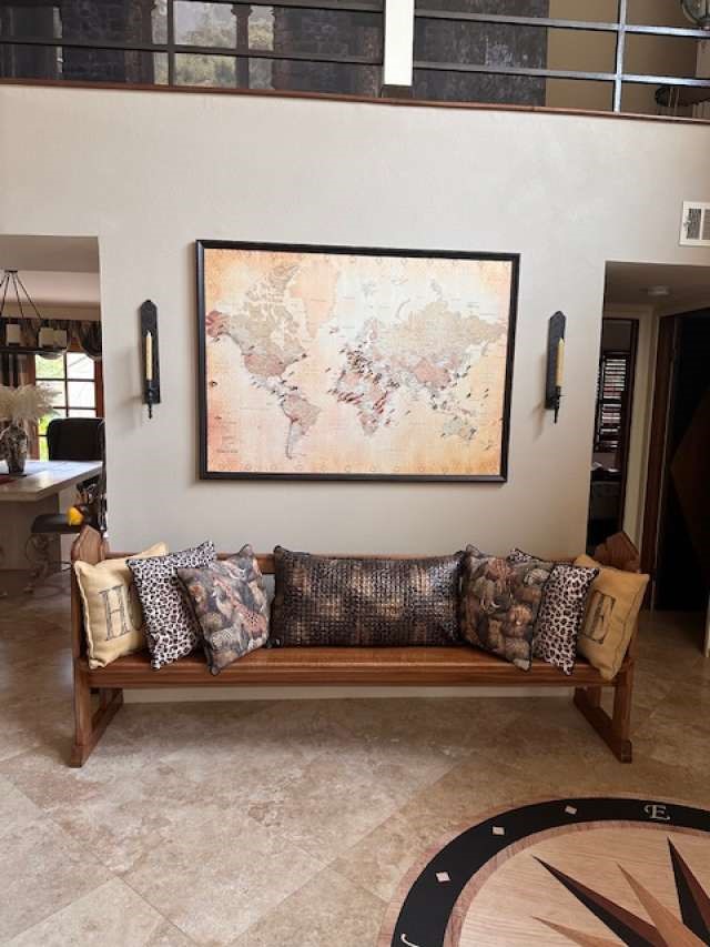 Recently renovated spacious home in private enclave. Four large bedrooms plus two bonus rooms currently used as library and office, plus a cozy media/den hide-a-way in the back. Vaulted ceilings in entry way, library, office and primary bedroom. Library (bonus room) and upstairs hallway have distressed solid hickory flooring and alder bookcases. Closets are recently renovated with new shelves and pipe hanging rods. Two ceiling fans. Roof has new underlayment with original tiles. Home shares a wall with one neighbor but is classified as a single-family dwelling. Two parking spaces adjacent to drive as well as two car garage/driveway. Open attic with electricity over garage for storage and a Craftsman tool/potting shed off the side patio. Front porch and side patio have slate pavers. Sprinkler system is a combination of drip and spray. Front courtyard seating (fairy garden) that could be expanded. Front mermaid fountain goes with home. Locking iron gate to front courtyard. Two upstairs balconies with slate flooring. East, west and south windows have energy window tint. All electric kitchen. Two heating/a/c units. Water recirculating system. Gas Bradford White water heater. Gas fire pit in backyard. Bedrooms have berber-style carpet. Travertine tile in kitchen and two bathrooms and porcelain high-gloss onyx-looking tile in living room. Gas fireplace, open design with hearth. All KitchenAid appliances. Two Trane 2015 HVAC systems and whole house water filtration with 4 years left on the current filter canister. Move-in ready!Interested in this Listing?