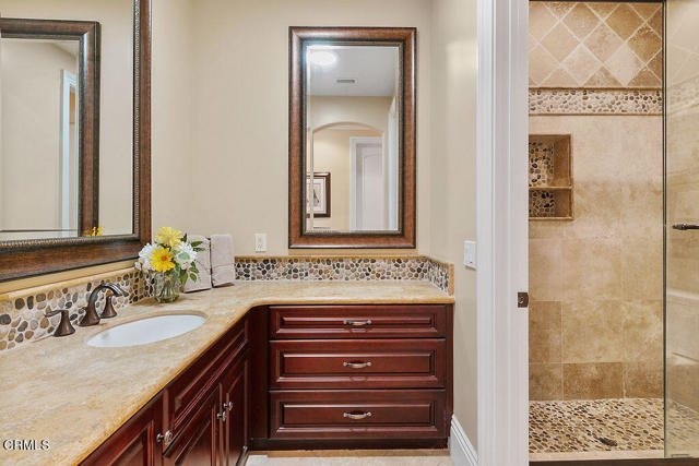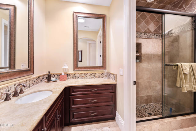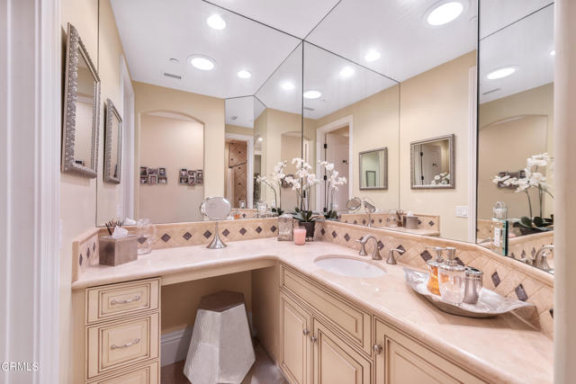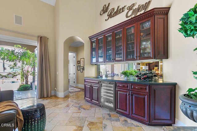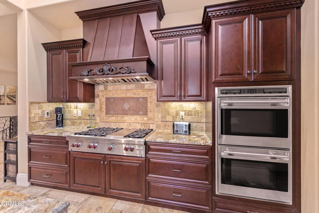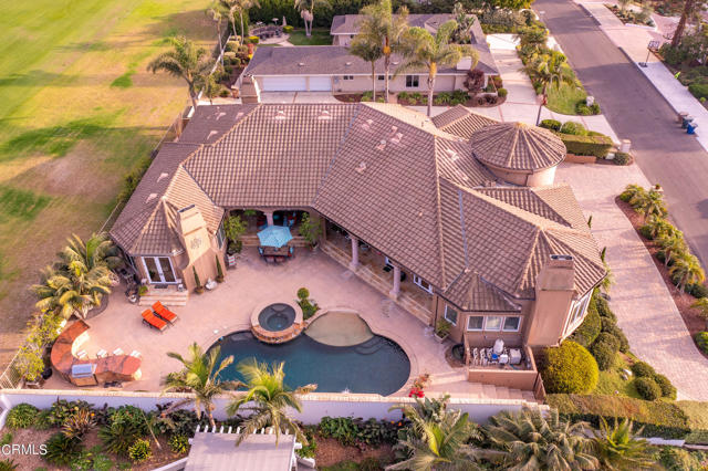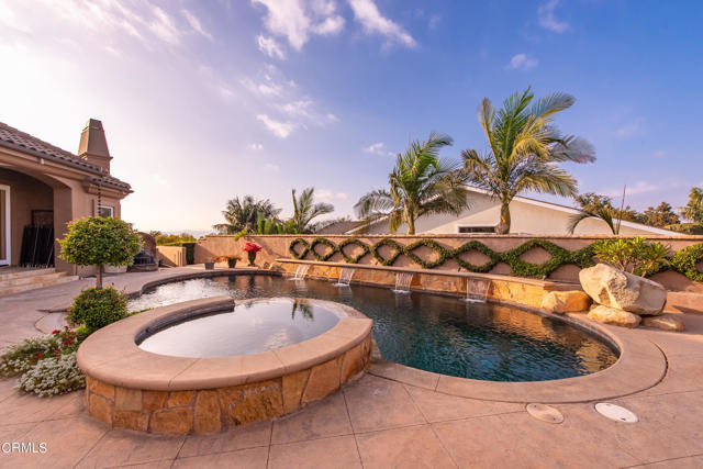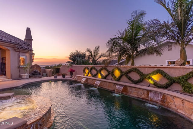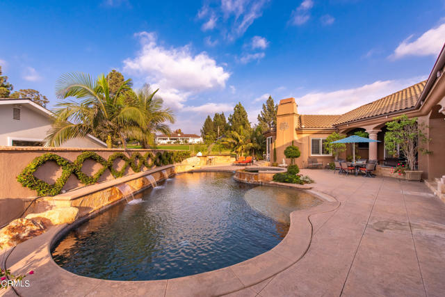 This is the stunning home you have been searching for. Villa Elegante is an elevated one level estate home with kitchen, bedrooms and baths on one level! 5 car Garage + golf cart garage and wine cellar on lower level with elevator access. located in prestigious Las Posas Estates on the 16th fairway with amazing views of the golf course, city, ocean and Channel Islands on a clear day. This luxurious Mediterranean style home features 4 bedrooms, each with an en suite' bathroom, a master suite with attached exercise room, master bath with large oval hydra bath, a walk-in shower and a hand painted Tuscan mural. The family room has high volume ceilings, a projector and screen, travertine floors, and a Nanawall system that allows for expanded indoor outdoor living. It also features a wet bar with a copper sink. The wonderful gourmet kitchen offers a large center island, Wolf appliances, a built in refrigerator, 2 dishwashers, 2 sinks, a microwave and warming oven, fabulous custom cabinets, and a walk-in pantry with a beautiful glass door. This home is truly like living in your very own private resort, complete with custom pool and spa, outdoor kitchen, covered patio with flat screen TV, and a golf cart garage with immediate court access from your side yard. There is an elevator for easy access to the garage, wine cellar and main living areas. This home is fully landscaped it as an entertainer's dream, located adjacent to the Las Posas Country Club golf course and close to Spanish Hills Country Club. Situated on the best cul-de-sac street in the neighborhood, this property offers not only luxurious living but also the convenience of being near highways, shopping centers, notable restaurants, and great schools. Take advantage of the proximity to the Country Club and enjoy a round of golf or admire the views of the pristine golf course. Don't miss your chance to own this incredible property in the Las Posas Estates. Schedule a private tour and experience the elegance and tranquility of Villa Elegante for yourself. Act now and make this dream home yours!Interested in this Listing?