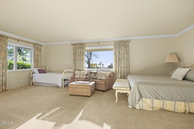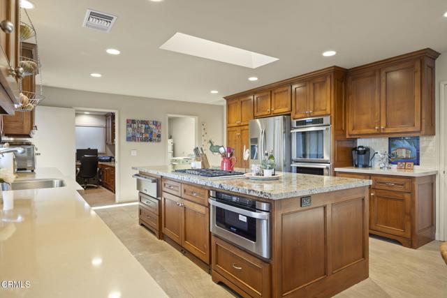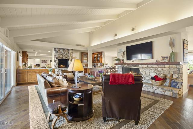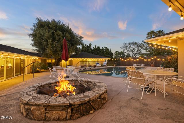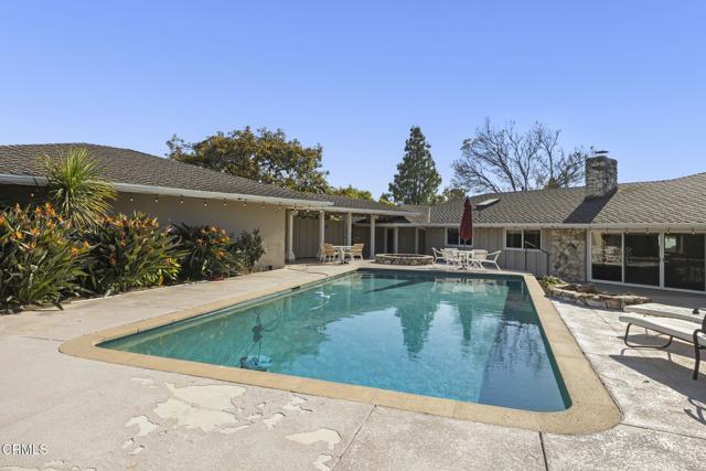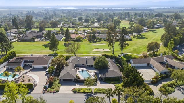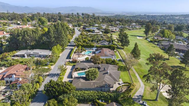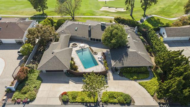 Spectacular Single-Story Estate on the Prestigious Las Posas Country Club Golf Course. Welcome to this rare and remarkable opportunity to own a luxurious single-story estate nestled on a peaceful cul-de-sac, perfectly situated along the 16th hole of the Las Posas Country Club Golf Course. With nearly 5,000 sq. ft. of custom living space, this 5-bed, 5.5-bath retreat offers a blend of sophistication, comfort, and California indoor-outdoor living -- all with breathtaking golf course and sunset views. From the moment you step through the gated entrance, you're welcomed into a private courtyard designed for entertaining and relaxation. Enjoy multiple patios, a resort-style PebbleTec pool, a cozy fire pit, and mature landscaping that includes fruit trees, avocados, and colorful rose bushes. The outdoor spaces set the tone for the rest of the home -- private, expansive, and ideal for hosting. Inside, a formal entry leads into the elegant living room featuring a classic brick fireplace, wood flooring, and panoramic views of the fairway through large sliding doors that open to the backyard. The adjacent formal dining room includes a butler's pantry and stunning views. At the heart of the home is a true chef's kitchen, with a large center island, granite countertops, gas cooktop, walk-in pantry, and generous storage. Designed for both function and comfort, it offers a perfect space for casual meals, game nights, or entertaining. The laundry room with sink and cabinetry, plus a dedicated office/craft room with built-ins, add everyday convenience. The inviting family room combines rustic charm with custom features -- well appointed bar area, stone fireplace, built-in shelving, vaulted wood-beamed ceilings, and an indoor BBQ grill. Sliding doors connect this space directly to the front courtyard, making it an entertainer's dream. The floorplan is ideal for multi-generational living, with 3 en suite bedrooms, including a guest suite with golf course views & private entrance. The primary suite is located in its own wing, offering ultimate privacy, a fireplace, spa-style soaking tub, walk-in closet, and backyard access. Additional bedrooms include a unique dual-room setup -- perfect for siblings & visitors. Oversized garage w/ample room for parking, a home gym, workshop, or storage w/a covered walkway to the kitchen. This extraordinary home offers the very best of Camarillo living -- peaceful, private, and surrounded by natural beauty.Interested in this Listing?