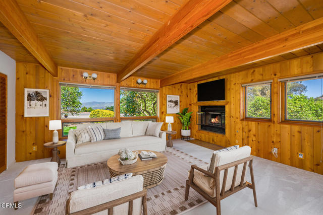 Hilltop Retreat with Panoramic Views | Perched atop 23 acres of lemon groves, this 2,900 sq. ft. hilltop home offers breathtaking 270-degree views spanning the Camarillo city lights, Santa Monica and Los Padres Mountains, and the Pacific Ocean on clear days. This private retreat features 3 spacious bedrooms and 3 bathrooms, designed to embrace indoor-outdoor living and the natural beauty of its surroundings.Freshly painted inside and out, the home boasts brand-new carpeting, vinyl plank flooring and new counter tops in all three bathrooms. The open-concept floorplan is accentuated by vaulted ceilings and walls of windows that fill the home with natural light and stunning views from every angle.The main level includes a bedroom and a full hall bath, equipped with a walk-in bathtub that could easily be converted to a walk-in shower. The downstairs family room exudes rustic charm with knotty pine walls, a wood-beamed ceiling, and a cozy gas fireplace--perfect for relaxing evenings.Upstairs, two expansive bedrooms each feature private on-suite baths and showcase dramatic vistas--Somis and the Los Padres Mountains to the north, and the Santa Rosa Valley and Santa Monica Mountains to the south.Step outside to a large patio ideal for entertaining or enjoying peaceful sunsets over the city and ocean. The attached three-car garage with two roll-up doors offers flexible potential for additional living space or a workshop.With two propane tanks, a private generator, and ample usable land for a guest house, workshop, or equestrian use, this property blends the tranquility of country living with the convenience of being less than five minutes from town.Don't miss this rare opportunity to own a truly unique hilltop estate just outside Camarillo.Interested in this Listing?
