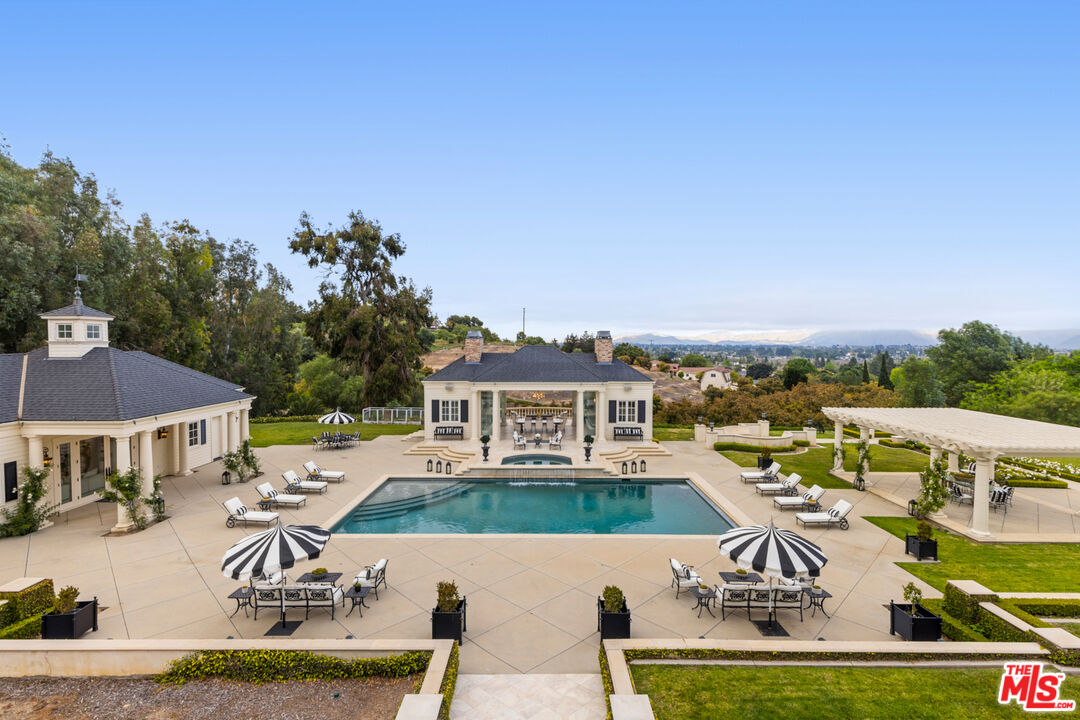 Presenting The Colony Estate, a once-in-a-lifetime opportunity set on 3.38 acres of impeccably landscaped, privately gated grounds, including 11,141 square feet of peaceful living space perfectly situated between Los Angeles, Santa Barbara and Malibu, with the private airport just 7 minutes away. This property is also available as an exclusive co-ownership opportunity, allowing you to indulge in personal weekend escapes and host unforgettable events, with the potential to share in up to $4 million in net annual income from weddings, private gatherings, corporate retreats, and film productions, this estate offers both lifestyle luxury and financial success! It's the perfect sanctuary for luxurious everyday living or weekend and holiday getaways, with a climate considered one of the best in the world. As you approach the majestic entryway of the estate, you're greeted by impressive 30-foot gates that open to reveal 3 buildings, expansive and perfectly manicured grounds along with a grand circular driveway and ample parking for everyone. The main house offers 9,290 square feet of hotel-like quality with the ground floor featuring an impressive foyer with 35-foot ceiling, elegant living room with fireplace, a sophisticated library, and a formal dining room with fireplace. The gourmet kitchen is a chef's delight with two walk-in pantries, complemented by a full bathroom, powder room, and a spacious laundry room on the first floor. Ascend to the upper level, where the luxurious master suite awaits with a fireplace, breathtaking panoramic views with wraparound balcony, lavish master bathroom, and an expansive walk-in closet. The second floor also accommodates three additional bedrooms, two full bathrooms, and a half bathroom. The third floor offers a versatile open space of more than 3,000 square feet, ideal for large gatherings, home theater, additional bedrooms or anything else you wish. The estate also boasts an impressive 898-square-foot guest house, complete with a full kitchen, living room, bedroom and bathroom, ensuring comfort and privacy for your guests. For grand entertaining, the 953-square-foot dining pavilion is stunning, featuring retractable pocket doors, fireplace, a full kitchen with a pizza oven and indoor barbecue, plus spacious balcony overlooking the gorgeous mountain landscape. Outdoor amenities include a wrap-around patio for leisurely afternoons, a massive pool, enchanting water features and fountain, spa, sauna, fire pit and pergola. The property is also equipped with a 9-car standalone garage, RV parking, and is even zoned for horses. Near 3 country clubs, including the world-renowned Spanish Hills Club, just one mile away, the location offers exclusive recreational and social opportunities. Message agent for more details on the co-ownership opportunity.Interested in this Listing?