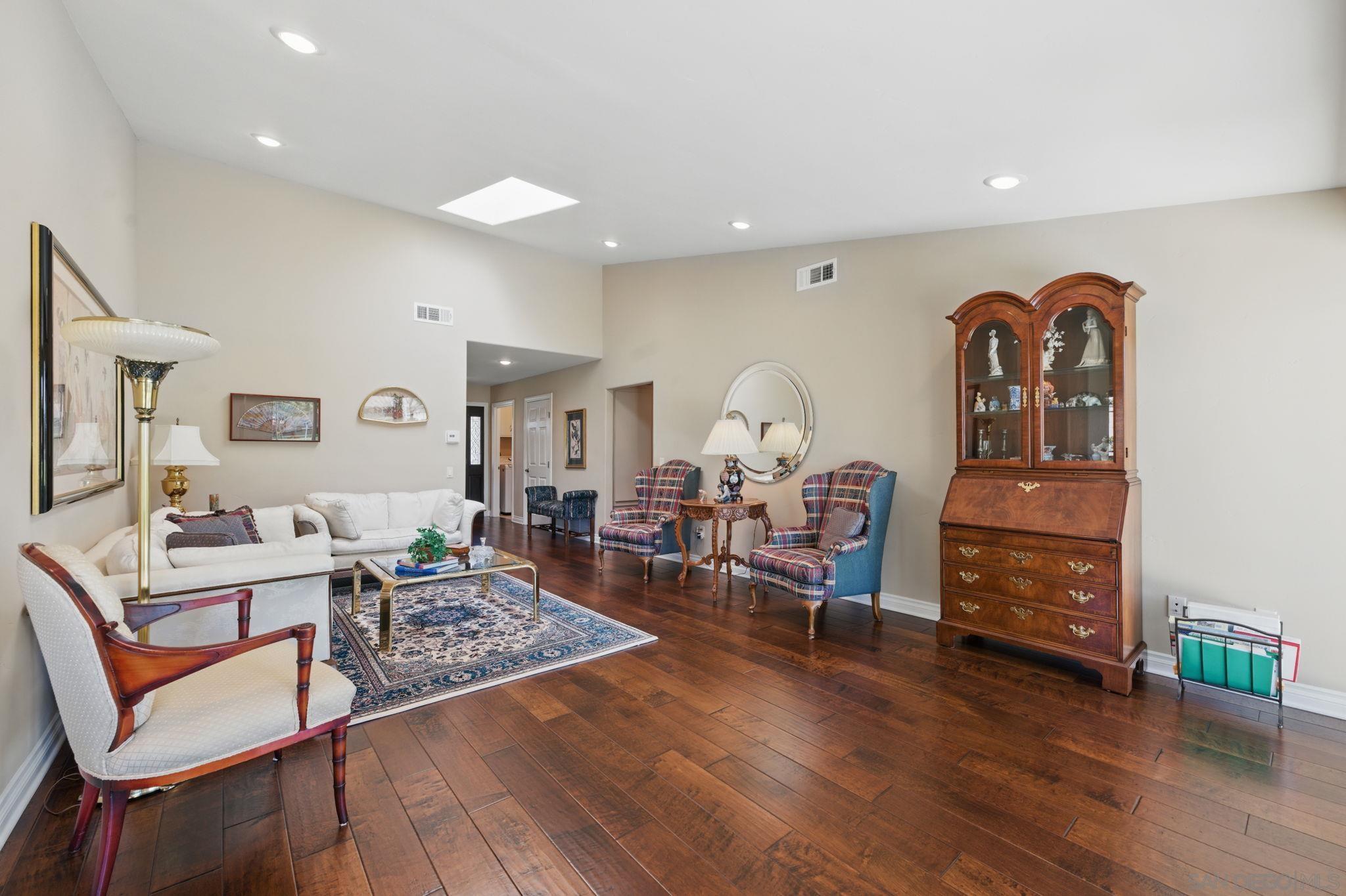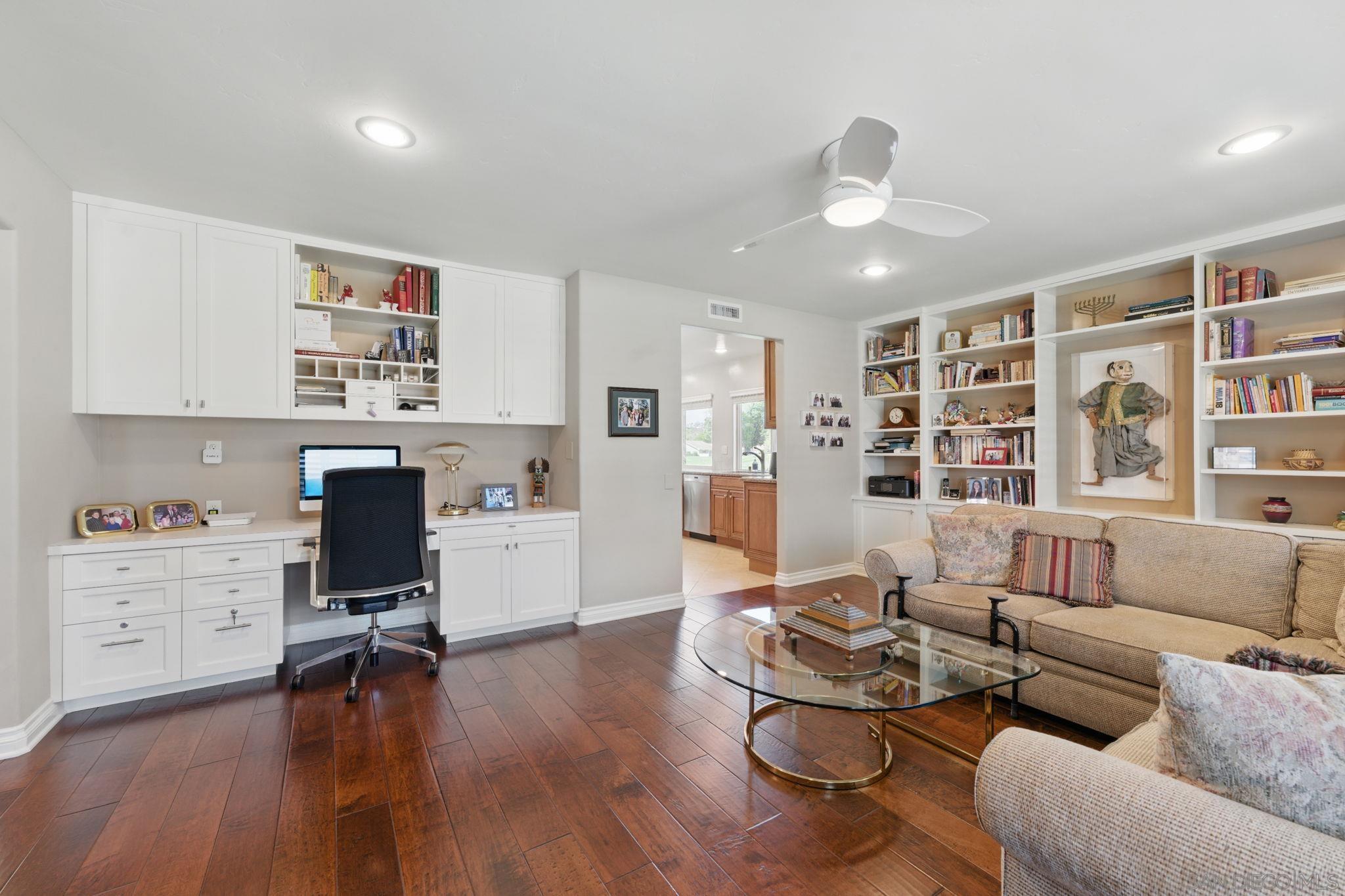 Immaculate "La Jolla" model "Golf Course" home! This prime location on the 3rd hole offers sweeping, uninterrupted views of the golf course from multiple vantage points, including the living area and outdoor patio. The wood flooring adds warmth and sophistication. The built-in office area provides a perfect space to work from home. The master bedroom has a large walk in closet, a bathroom with a walk in shower, dressing area, and double sinks. There are plantation shutters, skylights, a finished attic for storage, and a new AC unit. The spacious 2nd bathroom has a walk in shower. Walk to the clubhouse while enjoying the well maintained golf course and grounds. Guard gated community provides safety and security 24 hours a day.Interested in this Listing?