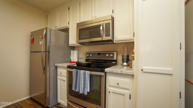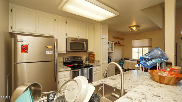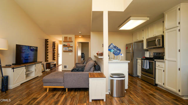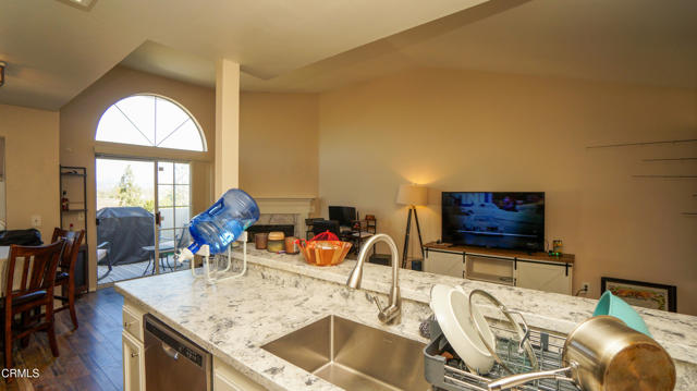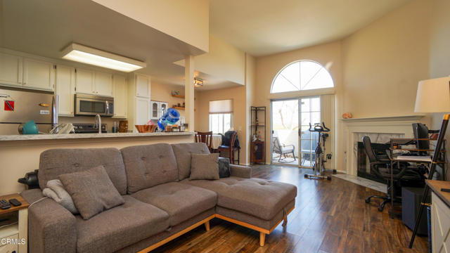Beautiful mountain and city views from this top level 1 bedroom, 1 bathroom, upgraded home for sale in the community of Vista Camarillo. The front entry leads to the open living and dining area featuring a vaulted ceiling, laminate wood flooring, and a fireplace with wood mantle and granite stone surround. Step outside to your personal open balcony and enjoy a wonderful morning sunrise or relax to an evening breeze. The remodeled kitchen includes newer cabinetry, granite counters with backsplash, high bar, stainless steel appliances and fixtures. Down the hall is the main bedroom with a large closet, upgraded carpet, and a renovated bathroom with newer cabinet, granite counter, mirror, lighting and tile flooring. Additional features include an attached indoor laundry and storage room, easy same level access to the parking garage with two reserved spaces, community tennis and basketball courts, pool & spa, playground, greenbelt space and RV parking.Interested in this Listing?