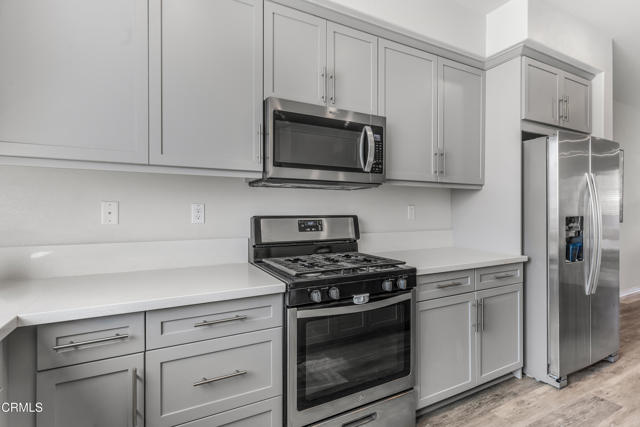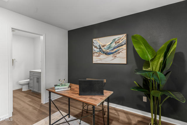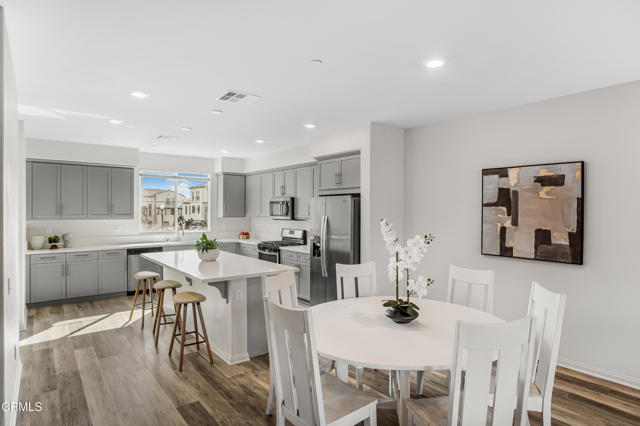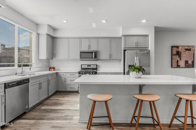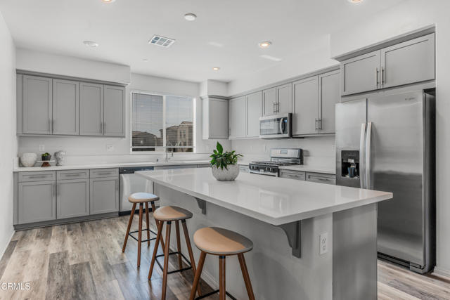 Welcome to this meticulously maintained, move-in-ready townhouse offering 2,024 sq. ft. of thoughtfully designed living space spread across three levels, located in a highly sought-after community with a pool, barbecue area, and clubhouse. From the moment you step onto the inviting porch with its charming blue door, you'll instantly feel at home.The first level features a versatile bedroom with a private bathroom, perfect for use as a guest suite or home office, offering both privacy and convenience.As you move to the second level, the spacious living room, complete with sleek vinyl floors, opens to a private balcony with serene views, ideal for relaxing. The open-concept layout seamlessly connects the living, dining, and kitchen areas--perfect for both entertaining and everyday living. The kitchen is a chef's dream, boasting elegant quartz countertops, stainless steel appliances, a large central island, and a convenient walk-in pantry. A well-placed half bath completes this level.On the third level, the master suite is a true retreat, bathed in natural light and offering peaceful views. It features a luxurious en-suite bath with dual sinks, a glass-enclosed shower, and a generously sized walk-in closet. The remaining two bedrooms share a spacious full bath and offer ample closet space.For added convenience, this townhouse includes a 2-car garage with additional storage space, plus two extra parking spaces outside. Additional amenities include an in-unit laundry closet with washer and dryer.Enjoy the privacy of your home while being just minutes from the Camarillo Outlets, a variety of restaurants, parks, and easy access to a major freeway--making commuting and leisure activities a breeze. The community's pool area, complete with a barbecue space, is perfect for outdoor gatherings and relaxation.This townhouse offers the perfect blend of comfort, style, privacy, and practicality--don't miss the opportunity to make it yours!Interested in this Listing?
