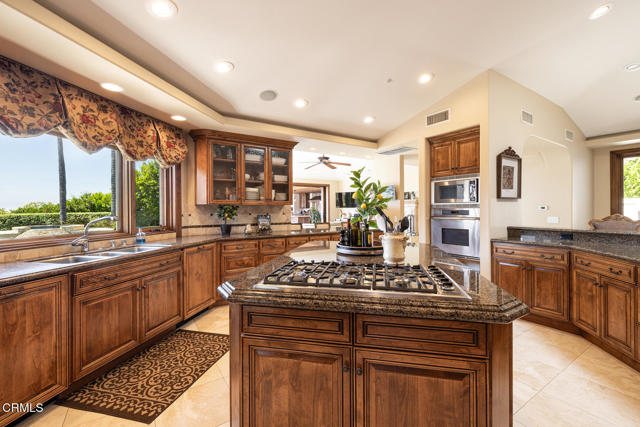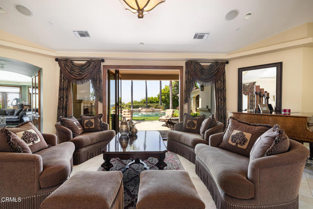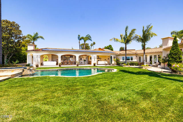 Welcome to this gorgeous, fully furnished Tuscan-inspired single-story home in the prestigious Las Posas Estates, offering breathtaking panoramic views of the city below. This custom floor plan offers 5 bedrooms and 6 bathrooms, with two distinct living wings designed for maximum privacy. This impressive kitchen showcases premium appliances, granite countertops, oak cabinetry, a spacious island, and a large window offering stunning views of the paradise yard. It also includes a climate-controlled wine cellar. Exquisite Interiors featuring stunning stone floors and countertops throughout. The master bedroom radiates luxury, complete with a dream walk-in closet. The main bathroom enhances the experience with a luxurious bathtub, dual sinks, and a cozy fireplace. Fully Automated Smart Home Complete with security gates and cameras for peace of mind. Experience resort-style outdoor living with a sparkling pool, a covered patio, an outdoor kitchen, and a pizza oven--perfect for the ultimate outdoor dining experience. Nestled above the hustle and bustle, this home is a serene retreat that combines privacy, luxury, and convenience.Interested in this Listing?