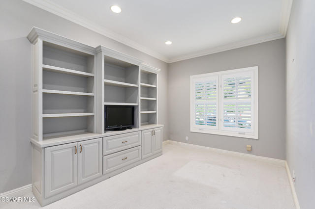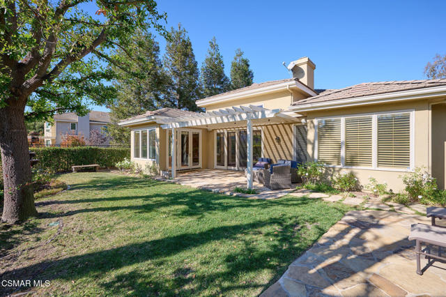 Some photos virtually staged. Nestled within the prestigious gated community of the Meadows of Lake Sherwood, this stunning Redesigned and expanded three bedroom (plus office) single-story home exudes warmth, elegance and sophistication. As you enter the home, you are greeted by dramatic cathedral ceilings that create a sense of grandeur and spaciousness. Floor to ceiling windows allow natural light to flood the interior, creating a bright and airy atmosphere, giving you spectacular views of the magical mountains.The gourmet kitchen is a chef's dream, featuring top-of-the-line appliances, custom hand-crafted cabinetry, and a large center island perfect for entertaining guests. The open concept layout seamlessly flows into the expansive and dramatic Great Room with soaring ceilings and stunning fireplace making it ideal for hosting gatherings and special occasions.Beautiful wood floors add warmth and character to the home, while the primary bedroom boasts a luxurious primary bath that rivals any five-star resort, complete with a custom walk in closet, sophisticated marble bath with soaking tub and elegant walk in shower. The private rear yard with covered stone patio offers stunning views of the surrounding mountains and total privacy, creating a serene oasis for relaxation and outdoor entertaining.Home features newer HVAC system, 2 car garage with epoxy floor and cabinets. newer water heater. Uncompromising quality abounds in this desirable single story with no steps.This home is the perfect combination of luxury and warmth, offering a tranquil retreat from the hustle and bustle of everyday life. With its impeccable design and attention to detail, this residence truly embodies the epitome of upscale living in a coveted gated community.Interested in this Listing?