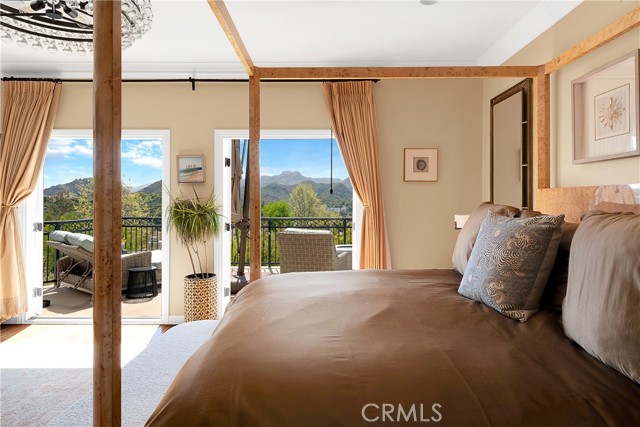 This renovated corner lot is situated on a cul-de-sac within the prestigious gated community of The Meadows, an oasis of beauty and sophistication nestled in Lake Sherwood. Entering through the crafted door you are greeted by vaulted ceilings and an abundance of natural light that floods every corner. This home offers comfortable living spaces that seamlessly integrate with the amazing outdoor entertaining areas creating the ultimate California indoor/outdoor lifestyle home. The chefs kitchen provides high end appliances such as a wolf six burner with griddle & dual ovens, Subzero fridge, Miele Coffee maker and microwave. Across from the island sits a viking mini fridge perfect for chilled beverages. Neighboring the kitchen you'll find the family room with pocket sliding doors and scenic windows showcasing the beautiful mountain backdrop. The family room is fit with a centerpiece fireplace and surround sound. The primary bedroom is equally impressive, with picturesque balcony that showcases the stunning lake & mountains views. The oversized spa like primary bath has been fitted with high end finishes and a center piece tub. The secondary bedrooms are oversized with plenty of closet space. Walk out to your lush backyard fit with sparkling pool/spa, covered patio with heaters/speakers & fire wall. Adjacent to the outdoor patio you're greeted by the twin eagles bbq / outdoor kitchen & bar. Off the pool you have an outdoor shower private shower fit for resort living. Paid off solar & conveniently located to all.Interested in this Listing?