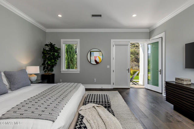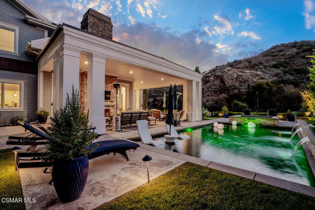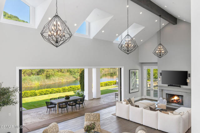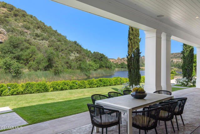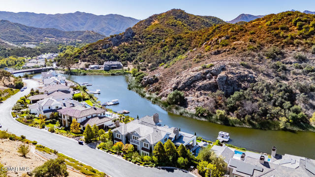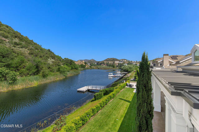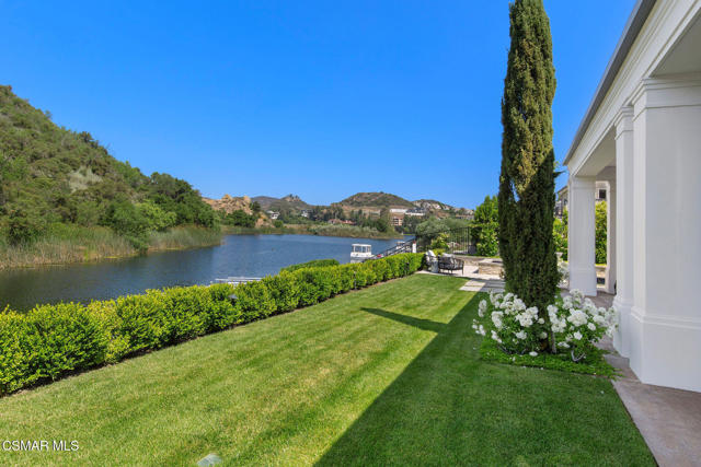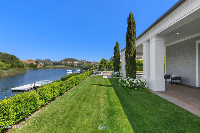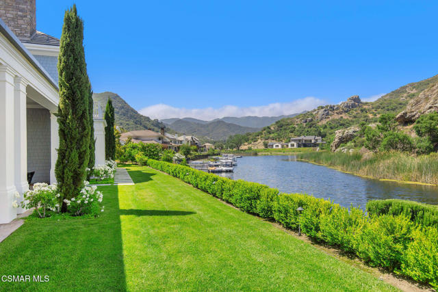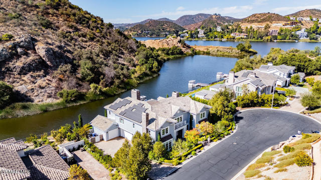 A Hampton-Style Masterpiece with Private Dock on Lake Sherwood. Welcome to an exquisite Hampton-style estate--a true embodiment of timeless sophistication and refined luxury--nestled on a quiet cul-de-sac behind the prestigious guarded gates of Sherwood Country Club.With direct lakefront access, this extraordinary residence seamlessly blends elegant design, modern comfort, and the serenity of lakeside living. Spanning approximately 6,459 square feet, the two-story home offers 5 spacious bedrooms, 5 luxurious bathrooms, and a powder room for guests.The formal dining room and elegant office/den lead into a gourmet kitchen outfitted with premium appliances and designer finishes--ideal for both intimate dinners and grand-scale entertaining. At the heart of the home, the expansive Great Room embraces the Southern California lifestyle with seamless indoor-outdoor flow, opening to a generous patio perfect for al fresco dining or relaxing under the stars.This smart home features Lutron lighting, advanced home automation, and a state-of-the-art solar power system, offering the perfect balance of convenience, efficiency, and innovation.For water enthusiasts, the private dock provides direct access to the crystal-clear waters of Lake Sherwood, inviting endless days of boating, paddleboarding, and waterfront enjoyment.Framed by the majestic Santa Monica Mountains, the estate captures breathtaking panoramic views and a peaceful sense of seclusion--while remaining just minutes from Lake Sherwood Country Club, with its championship golf course, tennis courts, fine dining, and fitness amenities, as well as all the upscale offerings of the surrounding community.Interested in this Listing?