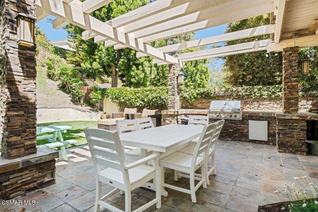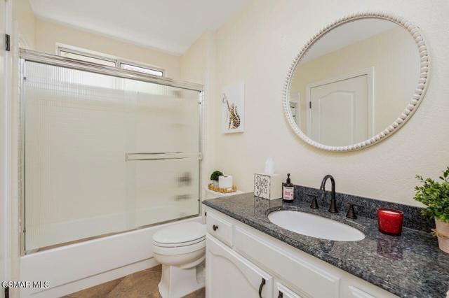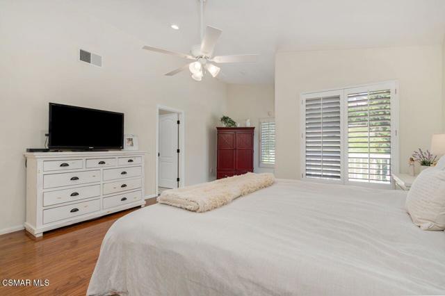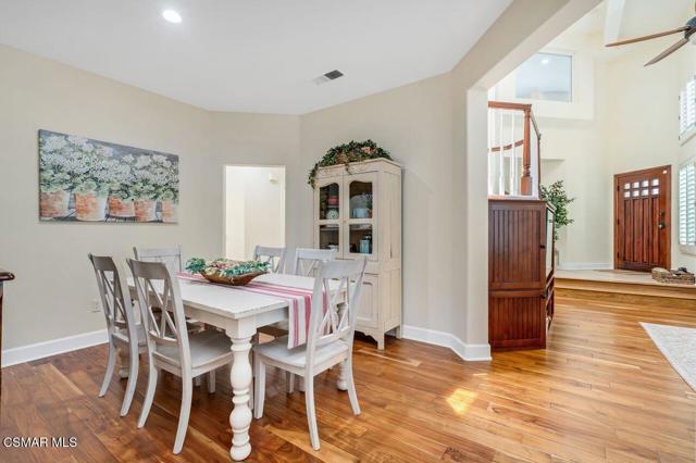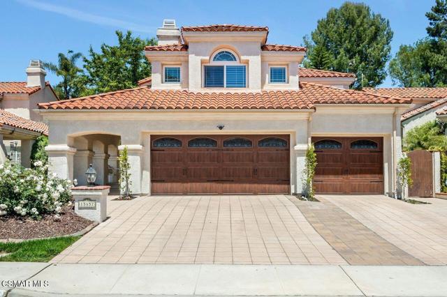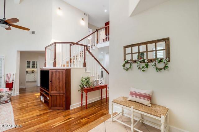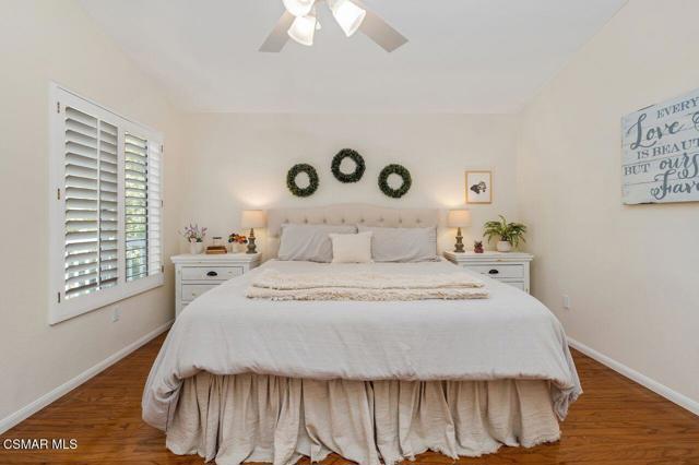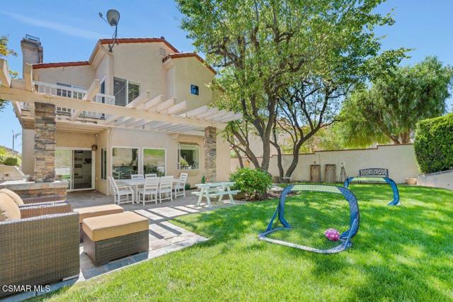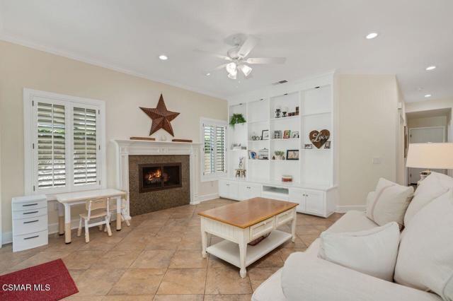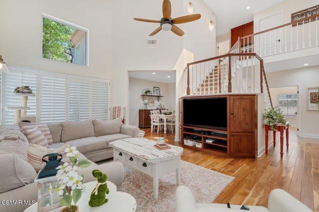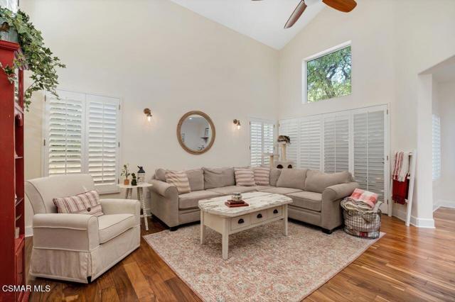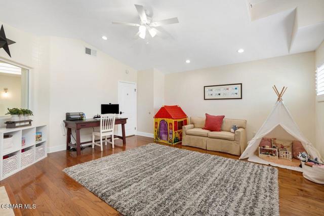 Welcome to this lovely 4-bedroom, 3-bathroom home nestled on a quiet cul-de-sac in the desirable Campus Hills neighborhood of Moorpark. Situated on a generous 8,361 sq ft lot, this 2,731 sq ft residence offers great curb appeal and the perfect blend of space, style, and functionality.Step inside to a dramatic entry with soaring 20-foot vaulted ceilings, skylight, and clerestory windows that flood the living room with natural light. The main level features elegant wood and travertine flooring, while the upstairs boasts comfy carpeting and wood floors in the primary bedroom and bonus room. A versatile layout includes one bedroom and a full bath downstairs--ideal for guests or a home office--and an upstairs bonus room perfect for a media room, playroom, or gym. The updated eat-in kitchen showcases white bead board cabinetry, granite counters, a subway tile backsplash, a center island, pantry, appliance garage, and ample prep space. Enjoy formal dining and living rooms along with a welcoming family room with thoughtful touches like recessed lighting, built-ins, and plantation shutters. The convenient laundry room features overhead cabinetry and a deep utility sink.Retreat to the primary suite with a sitting area, deck, walk-in closet, dual vanities, a separate water closet, and shower and soaking tub. Two secondary bedrooms and a guest bathroom along with the spacious bonus room, perfect for a media room, playroom, or gym, await you upstairs. Outside, enjoy the spacious backyard with a wrap-around paver patio, brand new patio cover, built-in BBQ, mature shade trees, and a large grassy area--perfect for entertaining and outdoor fun.Additional highlights include two fireplaces, plantations shutters, ceiling fans, a fully owned solar system, dual-zone HVAC, and double-pane vinyl windows and sliders, a 3-car attached garage with direct access, built-in storage, large work bench, and overhead racks, plus a wide paver driveway and walkway. Community amenities such as a pool, spa, sports court, and playground are nearby.Close to Campus Canyon Preparatory School (K-8), Moorpark College, The Moorpark Zoo, and Campus Canyon Park--with its pavilion, picnic areas, playground, and sports fields--this home offers the perfect combination of comfort, convenience, and community.