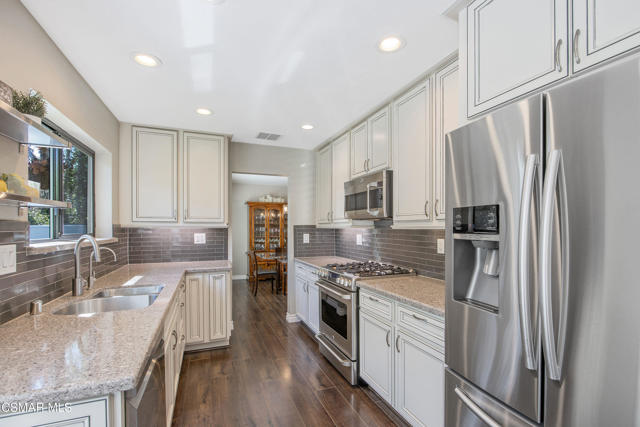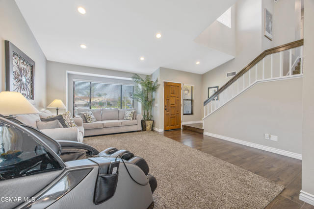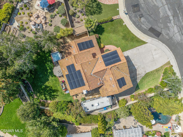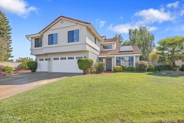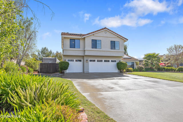 Situated in the coveted North View community of Moorpark, this highly desirable and updated residence offers an exceptional lifestyle. Boasting 5 bedrooms, 3.5 bathrooms, and nearly 2300 sq ft of living space on a generous nearly 10,000 sq ft lot, this home resides on a peaceful cul-de-sac. Prepare to be impressed by the private lush backyard and breathtaking views from the upstairs rooms, along with the extensive list of upgrades designed for modern comfort and efficiency. Recent enhancements include a 200A Main Panel and two 50A EV Charging Outlets in the finished 3-car garage, complete with epoxy flooring. Enjoy significant energy savings and peace of mind with a fully owned Tesla 8.8kW DC Solar system + 13.5kWh Powerwall battery (installed 2022), featuring valuable NEM 2.0 status and producing an impressive 12,300 kWh in 2024. The entire HVAC system was replaced in 2021 with dual-fuel Bosch compressors and Ecobee smart thermostats, ensuring year-round comfort. The heart of the home is the completely remodeled kitchen (2014), showcasing soft-close cabinets, quartz countertops, under cabinet lighting, stainless steel appliances, and an open feel with a breakfast nook and adjacent Family room featuring a gas fireplace. The downstairs also features a pantry closet, an updated half-bath and newer luxury wood-like laminate flooring, with newer carpet upstairs. Relax and unwind in the 2022 Hot Springs Envoy salt water spa and enjoy the convenience of a hot/cold outdoor shower.Additional highlights include recessed lighting throughout, remodeled upstairs bathrooms, double-pane windows and slider, ample attic storage with plywood flooring, and mature, producing lemon and avocado trees. Parking is a breeze with an elongated driveway and a gated RV parking area accommodating 32+ foot vehicles. This meticulously updated home in a prime Moorpark location is a true gem!Interested in this Listing?