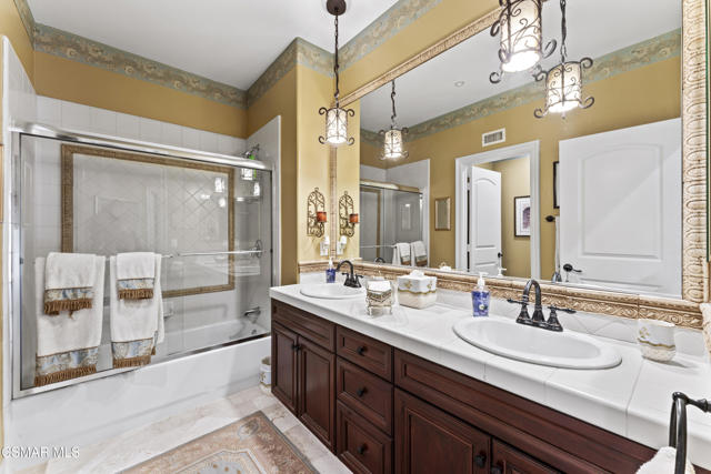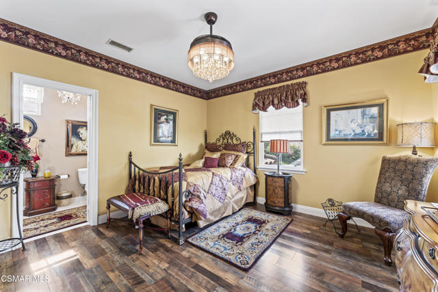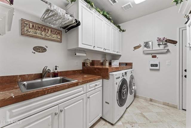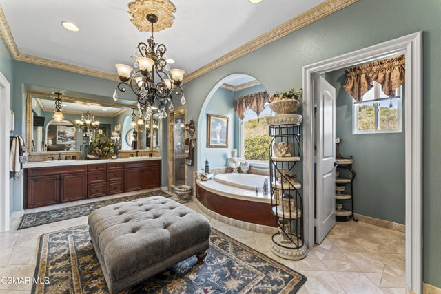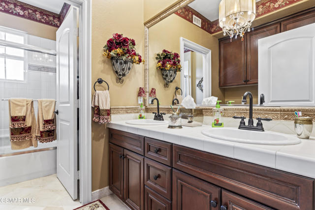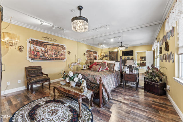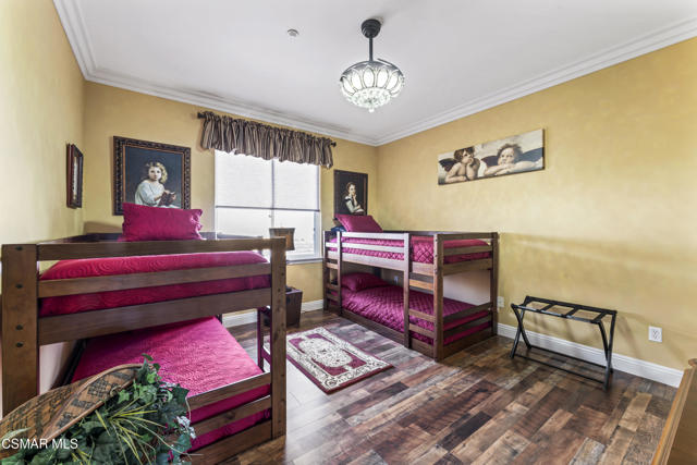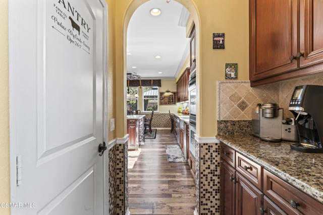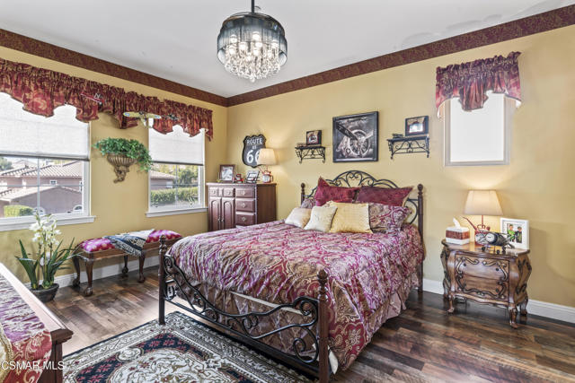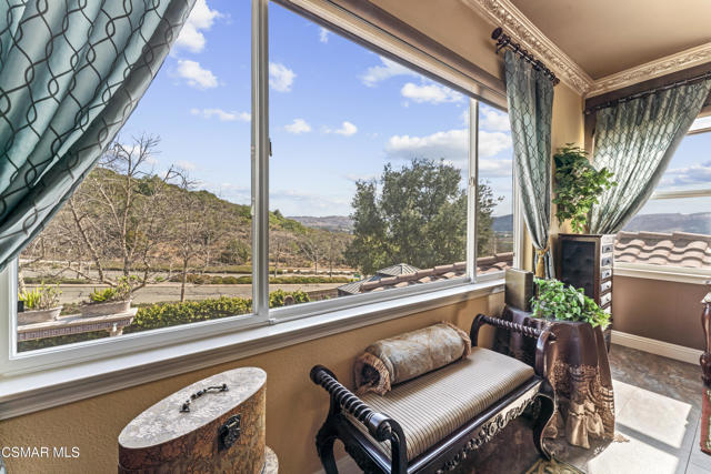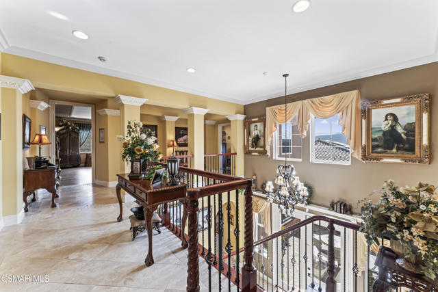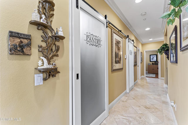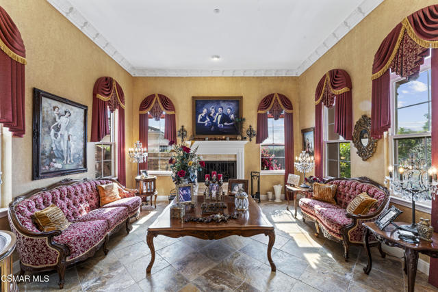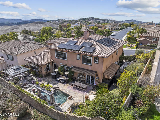 From the moment you enter this prestigious gated community of Serenata / Trieste tract. And step through a custom iron front door into the dramatic foyer you will be dazzled by the detailed craftmanship with no expenses spared. You are greeted with 2 formal sitting areas, one with a built-in wet bar for hosting the best parties. The adjacent living room has a cozy fireplace surround. The arched hallway opens up to a vaulted ceiling. with an adjacent walk in frigerated wine cellar, powder bathroom for guests, and a view of a private water featured courtyard. As you flow into the formal dining room, perfect setting for your special events it's as elegant as it gets. It also connects with a large butler's pantry adjoining into the chef's gourmet kitchen. truly a chef's delight. A massive, hooded center island, breakfast bar. with all stainless-steel high-end appliances, granite countertops with a large eat-in area. The family room is an open concept where you can entertain your guest and gather around the fireplace. In front of a built-in theater entertainment center with 2 large adjoining rooms. Large indoor laundry room. 2 car finished garage with built in cabinetry 3rd car tandem space 123 Sq Ft ''not included'' in total square footage of home converted into office/maid quarters. Second level there is a large landing with 5 spacious bedrooms, including a magnificent primary suite breathtaking, with views of the Regan Library across the rolling hills. the ensuite bathroom includes a jacuzzi soak tub, step-in shower with 2 resting benches. His and Hers walk-in cedar lined closets with custom cabinet units. The back yard is breathtaking, stunning and perfect for entertaining. auxiliary solar heated pool/spa, built in barbeque, fire pit, Pizza oven. Koi pond with waterfall, cabana with misters and retractable awning. Thats right it has it all. This home offers approximately 4,777 square feet. 5 bedrooms, 5 bathrooms the luxurious open and inviting floor plan features 9 thru12 foot-high ceilings with crown moldings and custom millwork with solid interior doors, cabinetry custom window coverings natural stone, marble, wood flooring throughout and extensive hard scape. Owned Solar System with back up battery This is magnificent well-maintained home. Not to mention low HOA dues easy access to freeways. Convenient shopping and beautiful Neiborhood parks.Interested in this Listing?