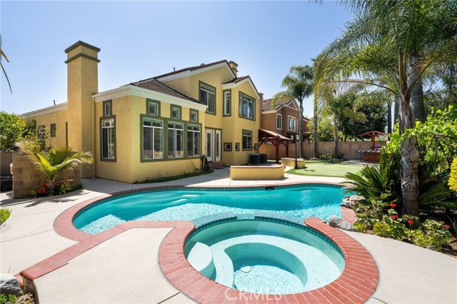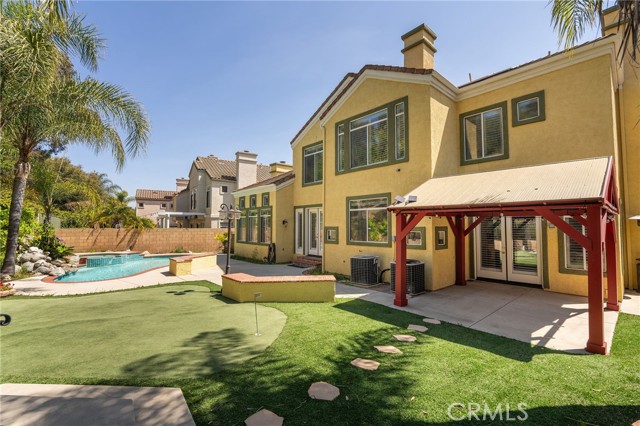 Price Reduction! Welcome to your dream home in Moorpark s prestigious Deauville Estates! Nestled atop a quiet cul-de-sac, this luxurious 5-bed, 4.5-bath home is nearly 3,800 sq ft of elevated living with stunning views and ultimate privacy. Step through double iron doors into a foyer with soaring ceilings, a sweeping staircase, and abundant natural light. The open floor plan features custom paint, new tile flooring downstairs, engineered wood upstairs, crown molding, plantation shutters, and two cozy fireplaces. The chef s kitchen shines with white cabinetry, granite countertops, a center island with prep sink, stainless steel appliances including a new LG Bluetooth-enabled dishwasher and a wet bar. French doors lead to a serene backyard oasis with a sparkling pool, spa, built-in BBQ, fruit trees, lush landscaping, and a 5-hole putting green. The primary suite boasts a dual-sided fireplace, sitting area, mini fridge, spa-like bath with dual vanities, soaking tub, walk-in shower, and custom closet. Additional highlights include a downstairs guest suite, a new HVAC system for downstairs, fully owned solar panels, Tesla charger, new electric water heater with a heater pump, epoxy garage flooring, a kitchenette in the garage and upgraded bathrooms with water-saving toilets. HOA includes front landscaping, community pool, spa, and clubhouse.Interested in this Listing?