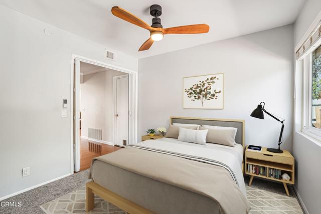 Discover this beautifully designed 2-bedroom, 1-bathroom residence, offering timeless appeal and comfort. The inviting front yard welcomes you into a home full of character and warmth. The spacious living room features neutral tones and a striking brick fireplace, perfectly positioned beside a window, creating an atmosphere of both coziness and elegance. The open floor plan effortlessly transitions into the dining area, making it ideal for both casual living and entertaining.The kitchen is a true highlight, showcasing wood cabinetry, crisp white countertops, and a tasteful backsplash. Adjacent to the kitchen, a versatile space awaits, ideal for use as a family room or formal dining area, complete with a sliding glass door that leads to the serene backyard.Both bedrooms are generously proportioned, with plush carpeting, ample closet space, and easy access to the full bathroom. One bedroom includes a sliding glass door, offering direct access to the private and tranquil backyard retreat. The backyard features a red brick patio, providing a perfect setting for relaxation and privacy.Additional amenities include a 2-car garage with convenient laundry facilities. Located in a highly sought-after Moorpark neighborhood, close to parks, schools, and much more! Don't miss your chance to own this charming property!Interested in this Listing?