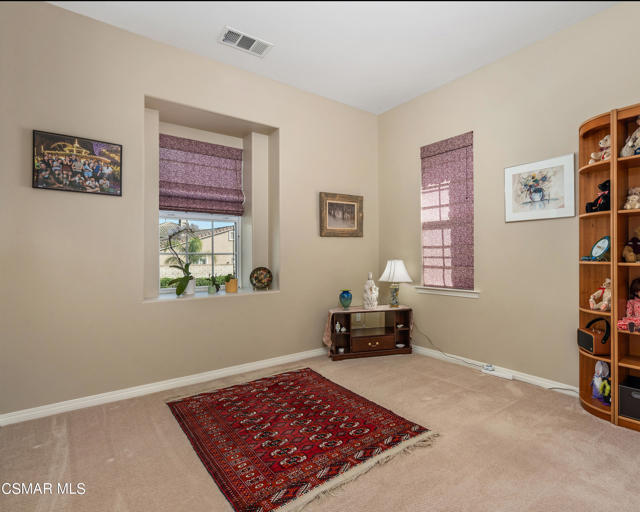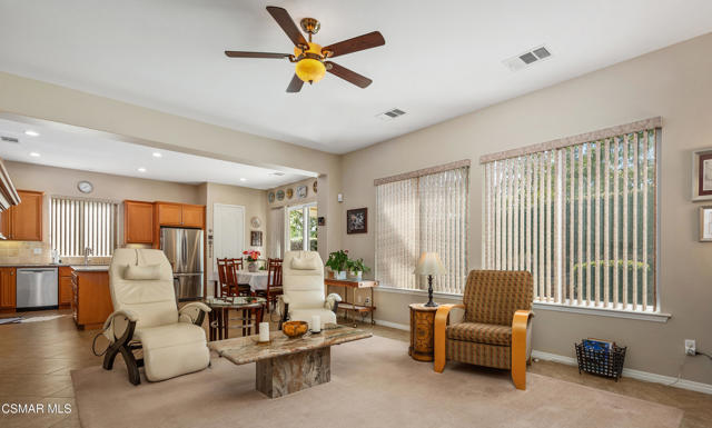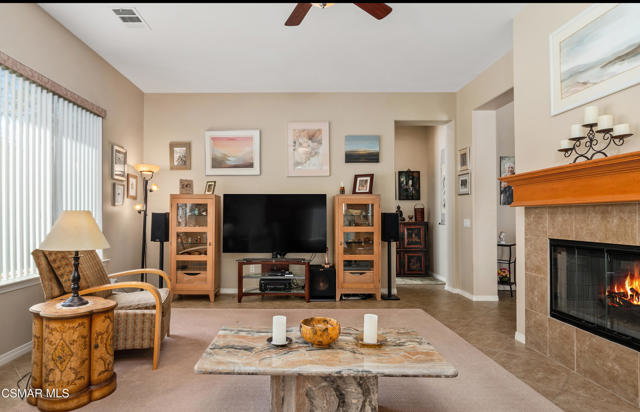 Welcome to this extraordinary single-story home located in the highly desirable gated community of the Moorpark Highland Estates. This remarkable home has been meticulously maintained and improved by its original owner. Proceeding through the double door entry one is greeted by the spacious living room with its dual sided fireplace that also serves the separate adjacent family room. The open floor plan features a gourmet kitchen with ECO glass counters, a center island breakfast counter, stainless steel appliances and a convenient pantry. The primary owner's suite provides for a walk-in closet and the bathroom includes two separate sink areas, a large vanity area and a spa tub and separate shower area, all enhanced with tiled granite. There are three additional bedrooms located away from the owner's suite with sizeable closet space and ample storage areas in the hallway. There is also a den/office that could be converted into a 5th bedroom. The HVAC system was replaced in December 2024 and the water heater in 2019. The home has been fire-hardened and the landscape recently improved to include artificial turf in the rear yard, a patio awning for shade and fire-wise rock landscaping all around the property. The driveway entry features pavers leading into the 3-car garage with speckled epoxy flooring. The community pool and spa are a short distance away with a picnic and BBQ area for your enjoyment. This unique home is located close to Mammoth Park with its playground and tennis and basketball courts. Shopping, schools and freeway access are just a short distance away. This is a rare find that will provide lasting enjoyment for years to come.Interested in this Listing?