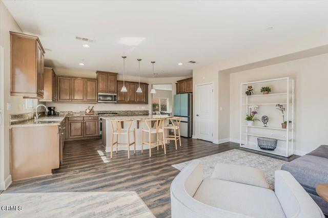 Nestled within the prestigious Living Smart Homes community in North Moorpark, this 2014-built residence offers an exceptional blend of modern luxury, energy efficiency, and serene natural beauty. Boasting 4 bedrooms, 2.5 bathrooms, and 2,402 sq. ft. of sophisticated living space, this home is designed to enhance both comfort and sustainability. The heart of the home is the expansive great room, featuring a custom media niche and seamlessly flowing into a gourmet kitchen adorned with slab granite countertops--ideal for both refined entertaining and everyday living. Upstairs, all bedrooms provide a private retreat, including the luxurious primary suite, where morning sunlight pours in, offering a tranquil start to each day. A dedicated upstairs laundry room adds an element of convenience. Step outside to the low-maintenance backyard, where breathtaking mountain and sunrise views create a picturesque setting. With no rear neighbors, the space offers exceptional privacy and serenity. Designed with sustainability in mind, this home features assumable leased solar panels, an energy-efficient 13-SEER air conditioning system, and low-VOC insulation, as well as water-conserving elements that promote an eco-conscious lifestyle. Perfectly positioned near upscale shopping, fine dining, and essential services, this residence also offers easy access to historic Old Town Moorpark, Metrolink, and major freeways, ensuring seamless connectivity to Los Angeles and Ventura County. Discover refined living in this exquisite North Moorpark home. Schedule your private tour today.Interested in this Listing?