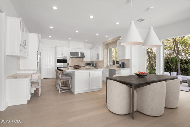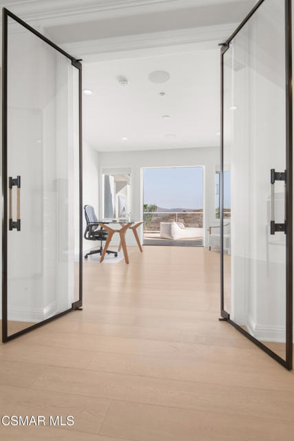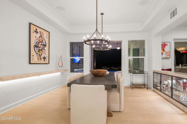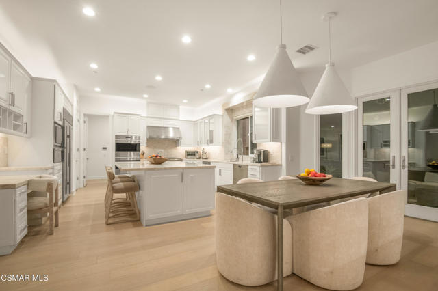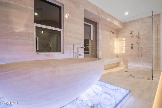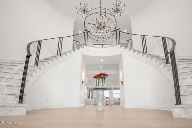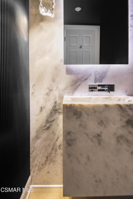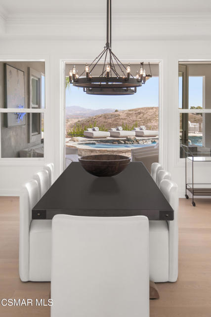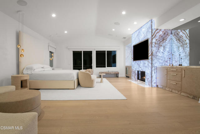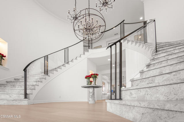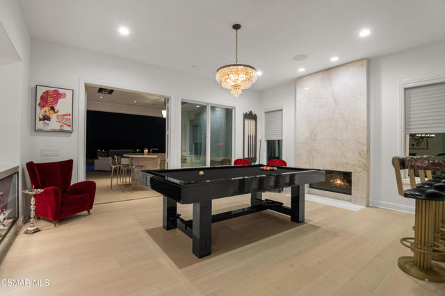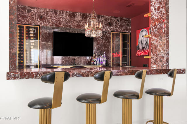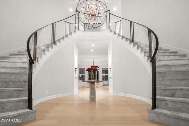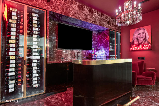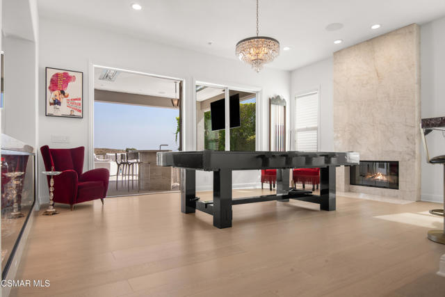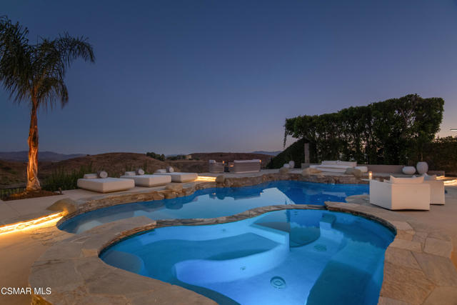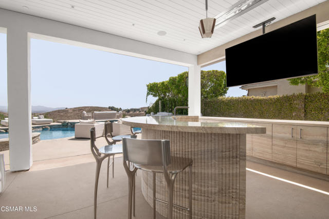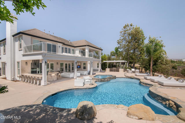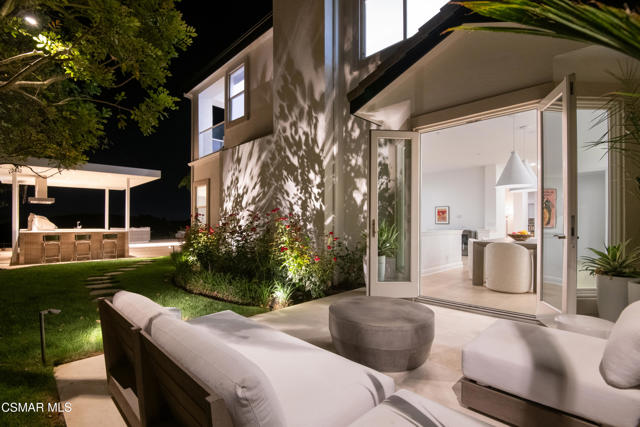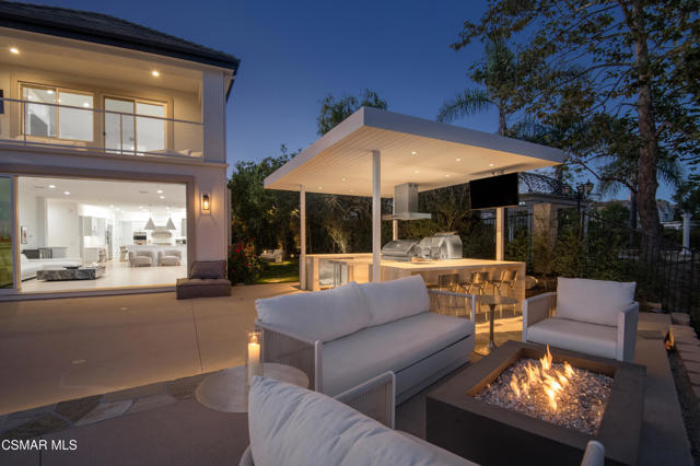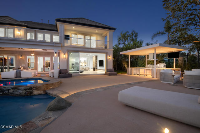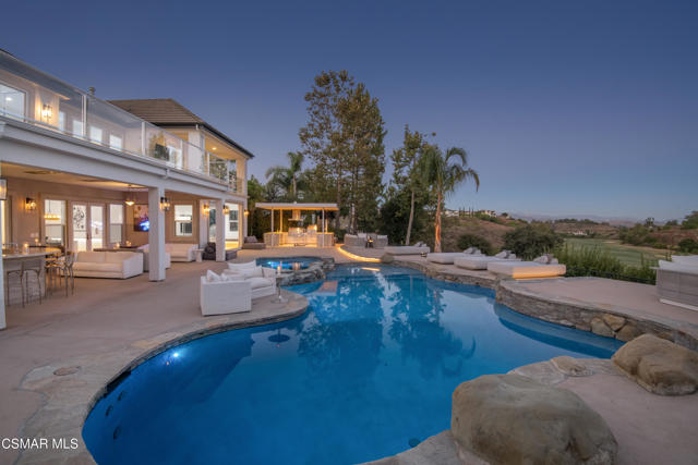 Introducing 7216 Littler Court--an extraordinary custom residence in the exclusive Country Club Estates. Encompassing 5 bedrooms, 5 bathrooms, and over 5,300 square feet of masterfully curated living space, this one-of-a-kind estate offers an unparalleled blend of architectural sophistication, serene ambiance, and resort-caliber amenities.A striking custom ribbed glass doorway sets the tone from the moment of arrival--an artful fusion of texture and transparency that offers both privacy and an elegant reveal into the home's dramatic interior. Inside, every detail commands attention. The sculptural glass staircase, framed by European crystal chandelier elements, creates a mesmerizing focal point, complemented by brushed oak flooring, Cristallo quartzite, and richly layered finishes sourced from around the world. Bespoke design is at the heart of this home, with hand-crafted stonework in the primary bath, a marble fireplace anchoring the formal living room, and a backlit onyx fireplace that elevates the private primary suite to a sanctuary of elegance. Thoughtful touches such as a built-in coffee station and custom ice maker in the primary suite speak to the art of indulgent living.At the heart of the home's refined entertaining spaces lies the Teranino Room--an exquisite interpretation of old Hollywood glamour infused with the modern sensuality of a cosmopolitan lounge. This bar space exudes atmosphere and allure, featuring polished marble surfaces, a glass-enclosed wine display, dual built-in refrigerators, and a custom-crafted bartender's mixing station designed for effortless, elegant service. Ambient lighting, rich textures, and tailored design elements create a seductive yet sophisticated setting ideal for evening gatherings and curated cocktail experiences. Just beyond, an adjacent entertainment lounge showcases a one-of-a-kind custom pool table, offering a perfect balance of leisure and luxury--a distinguished space for conversation, camaraderie, and the enjoyment of a fine aperitif in an elevated, private setting.Outside, the grounds have been transformed into a private resort, designed with intention and artistry. The fully equipped chef's barbecue kitchen, covered cabana with ambient lighting and heating, and custom outdoor bar create an atmosphere ideal for sophisticated entertaining or quiet evenings under the stars. The upgraded pool and spa invite leisure, while the surrounding curated spaces--including a tranquil meditation garden, firepit lounge, and a viewing terrace overlooking the mountains and golf course--offer moments of peace and connection to nature.Tucked within a gated, meticulously maintained community, this residence offers a rare sense of seclusion and privacy--a peaceful escape from the demands of daily life. Yet it remains just minutes from top-rated schools, shopping, dining, and convenient access to major freeways. It's a location that strikes the perfect balance between tranquil retreat and everyday accessibility.Set within one of Ventura County's most coveted enclaves and bordered by the prestigious 27-hole championship golf course, complete with fine dining, a driving range, and elite-level practice facilities, this is a home that exceeds every expectation.A singular expression of style, serenity, and substance--7216 Littler Court is more than a residence. It is a living work of art.Interested in this Listing?