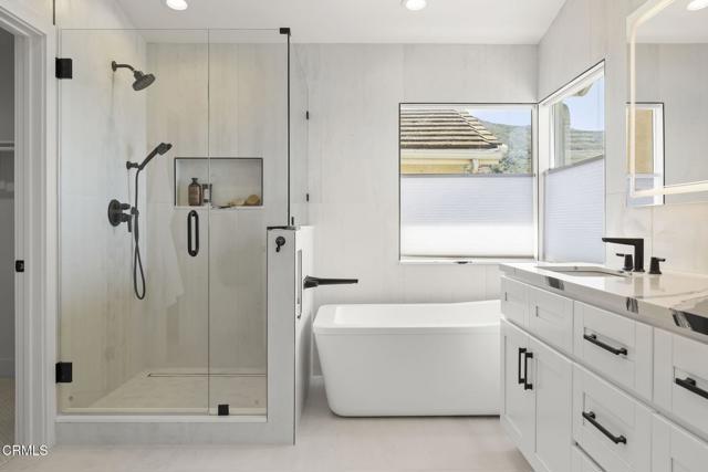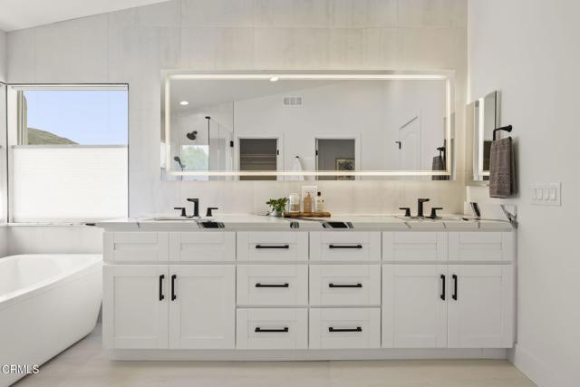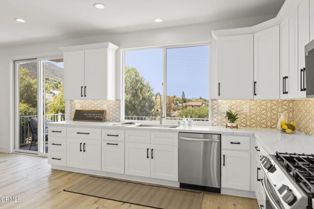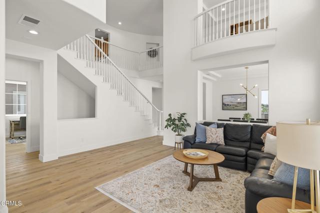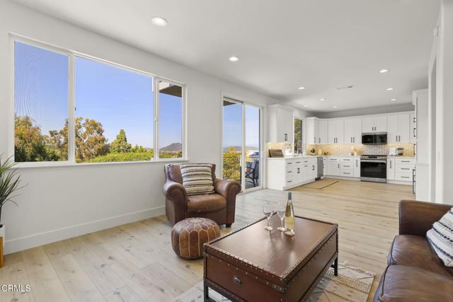 Welcome to 173 Midbury Hill; a beautifully remodeled home with breathtaking views nestled in the unincorporated area of Newbury Park, where country charm meets modern living. Enjoy the freedom of zoning on over 1/3 of an acre that allows livestock, yes, bring your goats, chickens, or a donkey! This expansive home offers 4 official bedrooms, with the potential to create up to 6 bedrooms, plus a 1-bedroom ADU with private access; perfect for multigenerational living or rental income. Step into the mid-level entry where natural light pours into the formal living room with soaring ceilings. The adjacent formal dining room leads to a fully updated kitchen featuring elegant white shaker cabinetry with soft-close doors and drawers, quartz countertops, custom tile backsplash, dual temperature beverage cooler, and top of the line stainless steel appliances. The kitchen flows effortlessly into a cozy family room with a fireplace and sliding doors that open to a wrap-around balcony perfect for enjoying stunning sunset views. This level also offers you a remodeled full bathroom and a private office that can easily convert to an additional bedroom. Upstairs, retreat to a spacious primary suite with panoramic views, a luxurious en-suite bath with dual vanities, a lighted mirror, custom tile shower and soaking tub, and a huge walk-in closet. Two more bedrooms share a renovated full bathroom and are conveniently located near the laundry room. A versatile open loft completes this level, ideal for a home office, gym, or another bedroom. The lower level boasts a massive bonus room, a bedroom, and another fully updated full bath, all with direct private access, making it an excellent candidate for a fully functional ADU. Step outside into a tiered outdoor oasis that invites both relaxation and recreation. Multiple viewing decks offer unforgettable sunset views over the valley and surrounding hillsides. An elevated entertaining area, complete with a custom fire pit and grassy play space, is perfect for gatherings. The property also features a dedicated hobby farm section, complete with structures for livestock and a chicken coop, offering a rare opportunity to embrace a homesteading lifestyle. Located within the highly regarded Conejo Valley Unified School District, this home provides a prestigious address with no HOA restrictions. An additional parcel is available to purchase separately, offering even more potential, whether for a second home or expanded yard.Interested in this Listing?