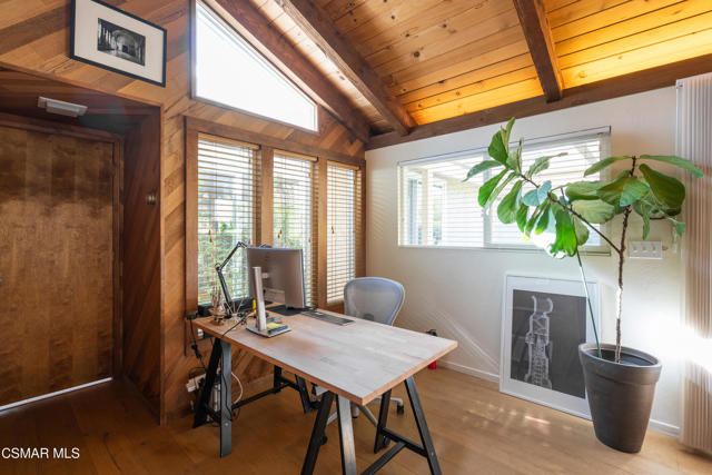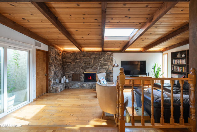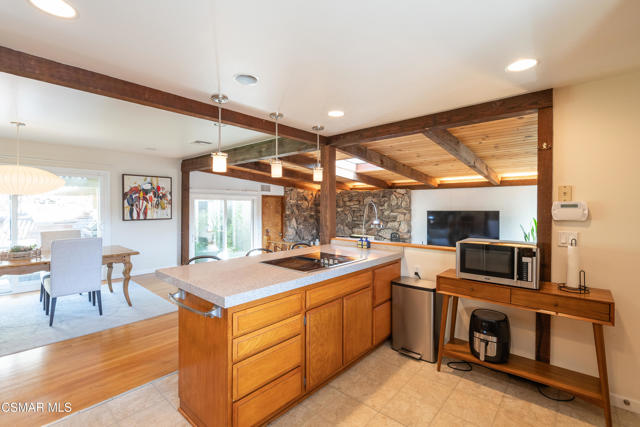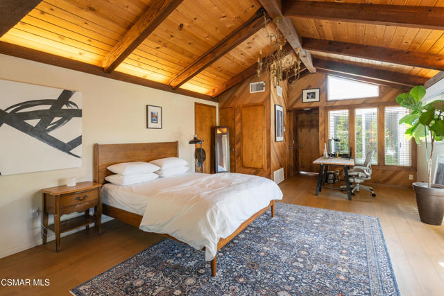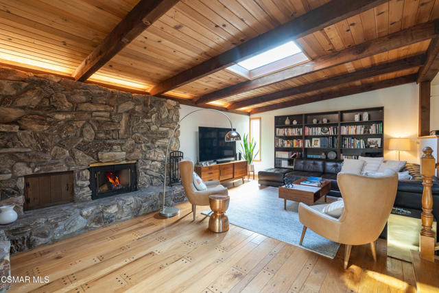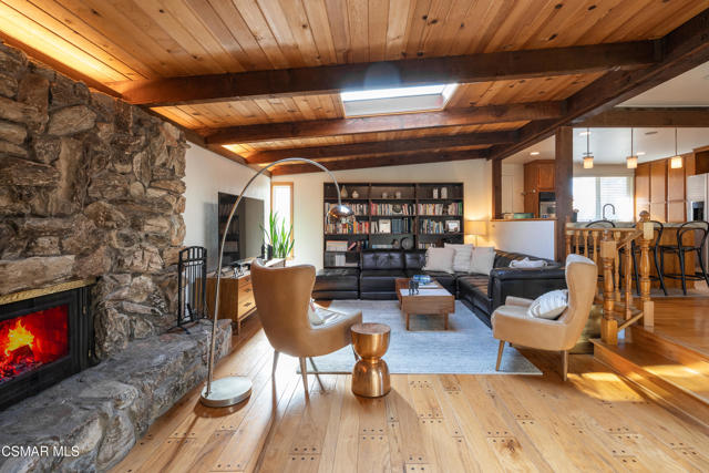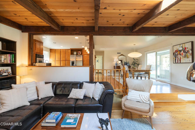 Nestled in the serene Dutch Haven neighborhood, this charming single-story home sits on a spacious corner lot of over 9,000 sqft at the end of a cul-de-sac. Featuring 4 bedrooms and 2.5 bathrooms, this mid-century gem boasts numerous upgrades, including skylight, renovated bathrooms and double-pane windows.The inviting living room is complemented by vaulted wood ceilings, a raised hearth stone fireplace, and a large window overlooking the backyard. The open kitchen flows seamlessly into the dining area, with a slider that opens to an expansive covered patio--perfect for entertaining. The lush backyard is adorned with fruit trees and colorful flowers, offering endless possibilities for gardening enthusiasts.The fourth bedroom, with its vaulted ceiling, ample natural light, and private half-bath, is ideal for use as a home office, playroom, or guest quarters. Dual zoned A/C for comfort and efficiency. Centrally located in the desirable Newbury Park area, this home is close to excellent schools, hiking trails, shopping, and more. With its combination of charm, upgrades, and location, this property is a must-see!Interested in this Listing?