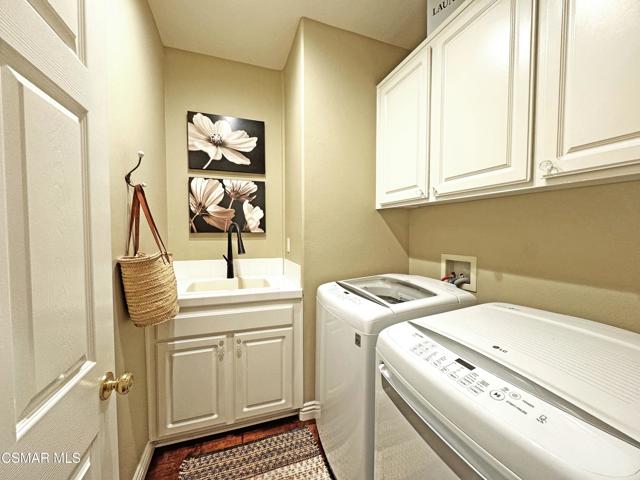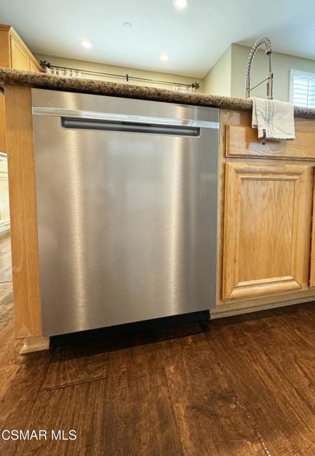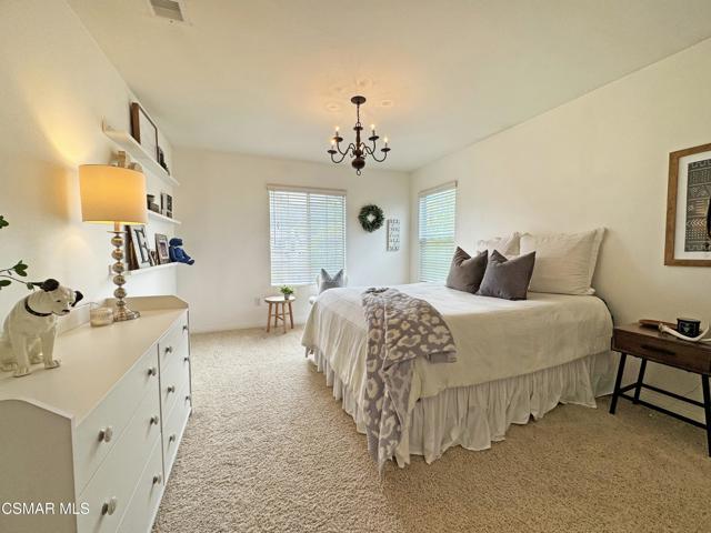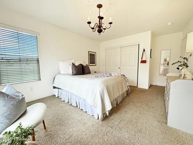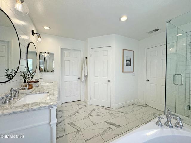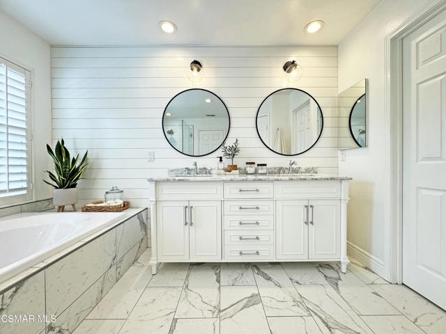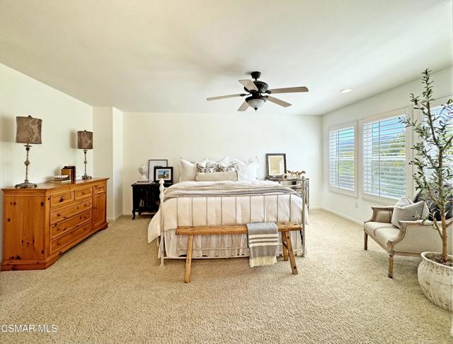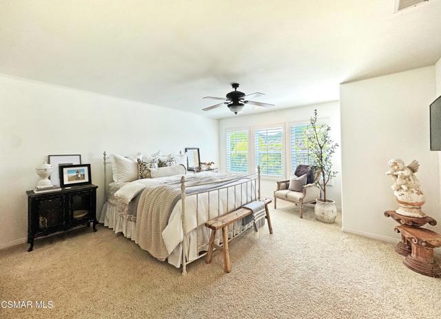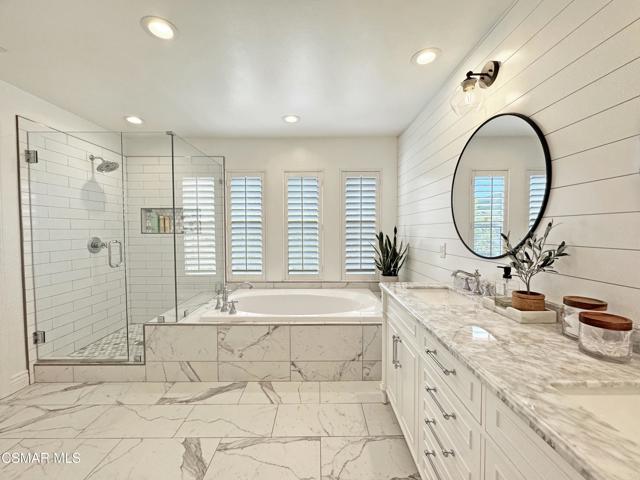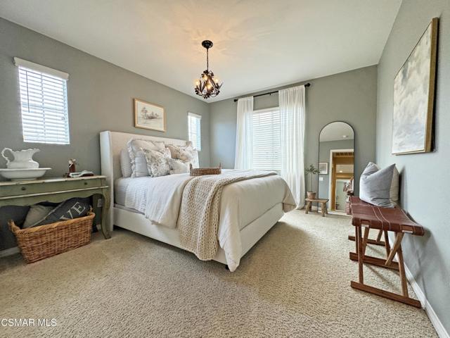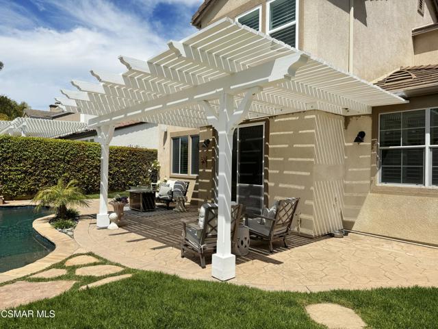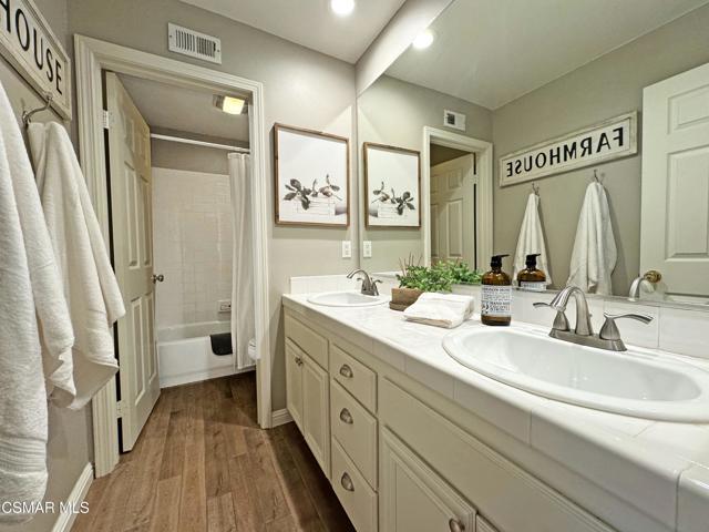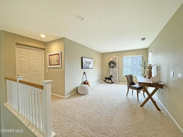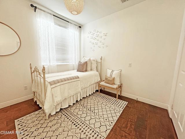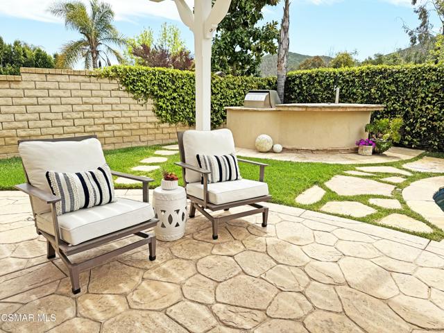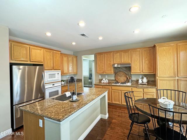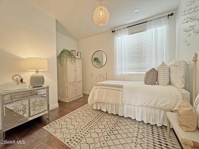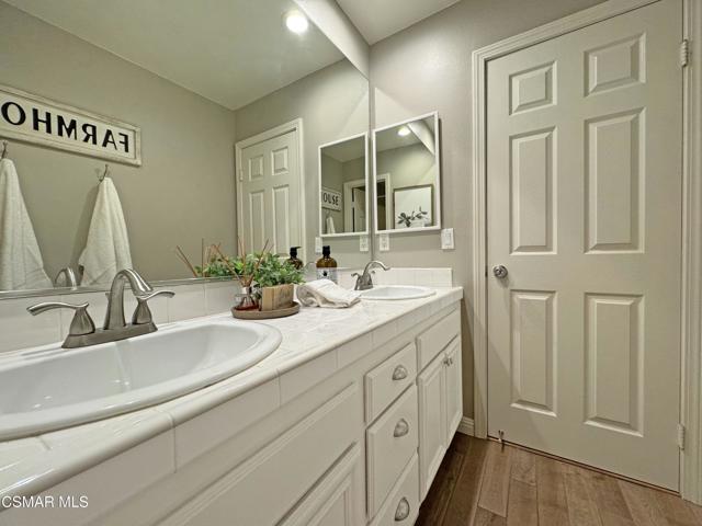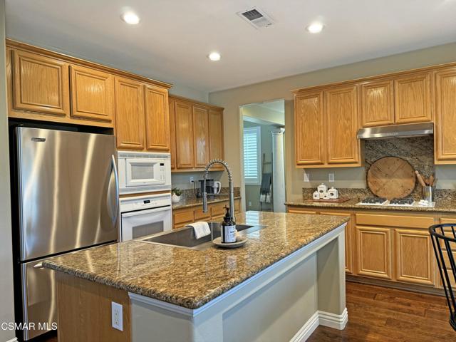 Beautifully upgraded Dos Vientos home with a stunning tropical entertainer's backyard, featuring a salt water pool and spa with waterfall, built-in BBQ, covered patio and grassy area! All perfect for summer fun! As you step into the entryway of this fabulous home, with its light bright open floor plan, you are immediately drawn into the spacious living room, complete with exquisite hardwood flooring, vaulted ceiling and plantation shutters. Walk through the elegant dining room with plantation shutters into the stunning updated kitchen and enjoy the granite counters, stainless steel farmhouse sink, large center island, and breakfast nook with sliding patio door leading to the breathtaking backyard. Take a moment to enjoy the family room with its welcoming fireplace, hardwood flooring, recessed lighting, and plantation shutters. Note the conveniently located downstairs bedroom with hardwood flooring and the stylishly remodeled bathroom, boasting a pedestal sink and updated fixtures and fittings. Be sure to see the laundry room with its own sink and plenty of storage room. Ascend the stairs and see the huge loft with recessed lighting! This is an ideal space for a den or office, or if you prefer, convert it into an additional bedroom. Now take time to linger in the large primary bedroom with its lovely pool and mountain view, seen through new dual pane windows! Take a moment to see the walk-in closet and newly remodeled master bathroom with double sinks, oversized shower and separate bathtub, white/grey marble countertop, and new white cabinet, fixtures and fittings. Meander through the upstairs secondary bedrooms and view the secret storage room inside one of the bedroom closets! The hall bathroom features double sinks, tub with shower, updated fixtures and fittings as well as wood-like tile flooring. Now it's time to step into the tropical backyard and see the sparkling pool and spa! Relax under the covered patio and imagine living at this amazing property! Conveniently located close to Dos Vientos Community Center and Park, sports fields, playgrounds, hiking trails and award-winning Sycamore Canyon School!Interested in this Listing?