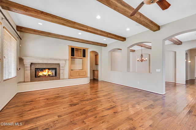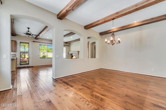 Nestled in the highly sought-after Dos Vientos community, this elegant single-story home offers a perfect blend of sophistication and comfort. Step inside to discover stunning home with many upgrades from the wood beam ceilings, Upgraded Fireplaces, rich wood flooring, and a charming center courtyard that fills the home with natural light. The inviting floor plan welcomes you with a formal living room featuring a cozy fireplace, a dedicated office/study, and a formal dining room--ideal for entertaining. The spacious family room seamlessly connects to the kitchen, where a large center island, double ovens, gas cooktop, and abundant cabinetry make it a chef's dream. The luxurious primary suite boasts an en-suite bath with dual vanities, a soaking tub, a glass enclosed shower, and a generous closet. Two additional spacious bedrooms have a well-appointed bathroom, while the interior laundry room offers ample storage. Outside, the beautifully landscaped backyard provides a serene retreat, complete with breathtaking mountain views, a built-in BBQ, and lush greenery--perfect for relaxation or entertaining. Experience the best of Dos Vientos living in this stunning home!Interested in this Listing?