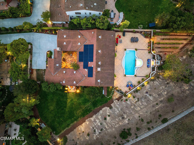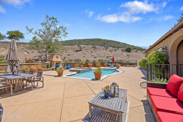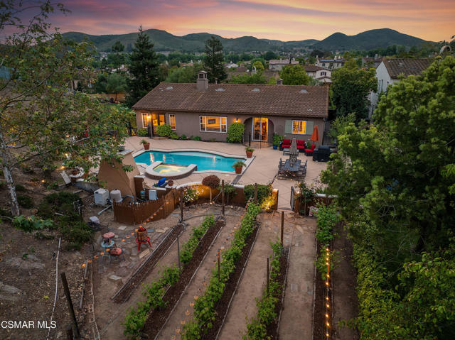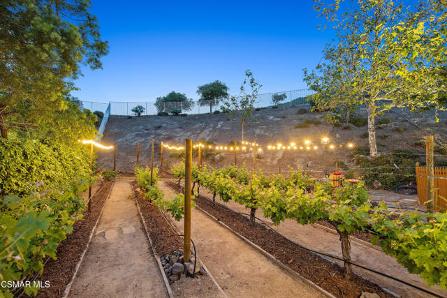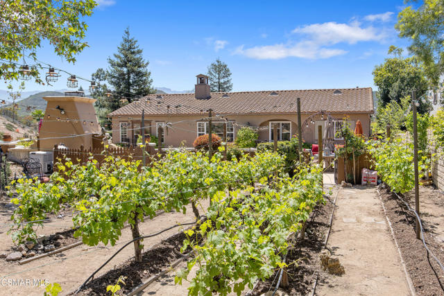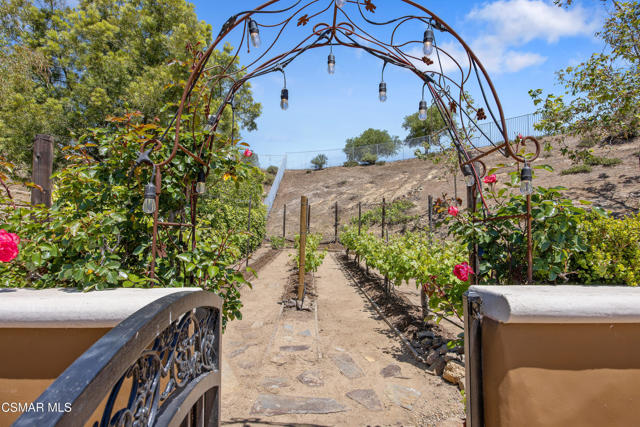 Exclusive Spanish inspired courtyard single-story residence offering an extraordinary blend of casual luxury, privacy, and craftsmanship. Set on a premier elevated flag lot with a private vineyard and backing to peaceful open space, the property is a true sanctuary--perfectly positioned to capture sweeping mountain vistas and coastal breezes. A custom distressed wood and wrought iron entry door sets the tone for the rich architectural detail. A flagstone courtyard with lush landscaping and a tranquil fountain provides an elegant first impression. Inside, timeless design meets modern sophistication with hand-finished hardwood flooring throughout the main living areas of the home, smooth coat walls and ceilings, and artisan wrought iron light fixtures that add character and warmth. The chef's kitchen is fully customized with stainless steel appliances, tailored cabinetry, large island, breakfast area, walk-in pantry and kitchen office space. This flows seamlessly into open-concept living space with picture window, fireplace and vaulted ceiling, perfect for both relaxed living and stylish entertaining. Enter through wide sweeping arches into the inviting dining room with vaulted ceilings and distinctive wood designed floors. The secluded primary bedroom is a true retreat offering vaulted ceilings, French doors, and primary bath with dual vanity, soaking tub, spacious shower and custom walk-in closet. The hallway leading to the secondary bedrooms and several of the bedrooms have French doors for an abundance of natural light and coastal breeze. The separated secondary bedrooms boast pavers, wood blinds and spacious closets. Outside, the sprawling private yard is nothing short of exceptional--featuring a magnificent pool and spa, an outdoor fireplace, and your own private vineyard. The vineyard has been meticulously maintained and manicured to achieve the best possible grape production. The expansive lawn area framed with majestic redwood trees, offers views of the surrounding mountains, natural beauty and open space. Whether hosting guests or enjoying a quiet sunset, this setting offers a truly elevated outdoor experience. The former 4-car tandem garage is now a 2-car garage and converted media room, creating 3,000 + sqft of living space. The recently installed solar panels increase the desired energy independence. Additional highlights include, individual laundry room with utility sink, powder room, garage epoxy floors and built-in storage. The property is close to award winning schools, terrific parks and incredible hiking and biking trails. Experience and enjoy this truly unique and special property.Interested in this Listing?
