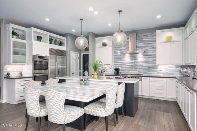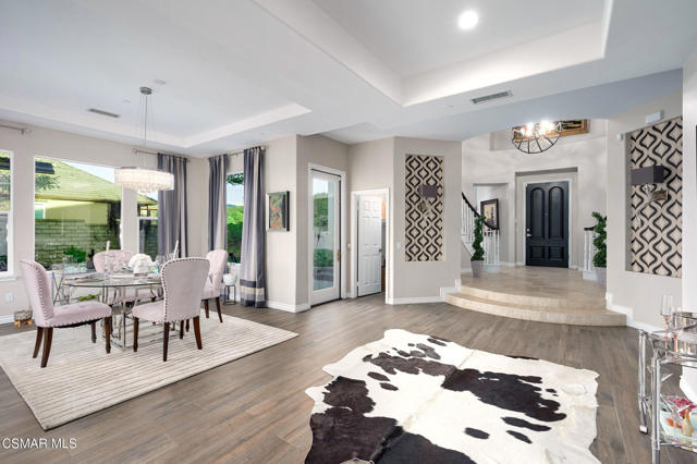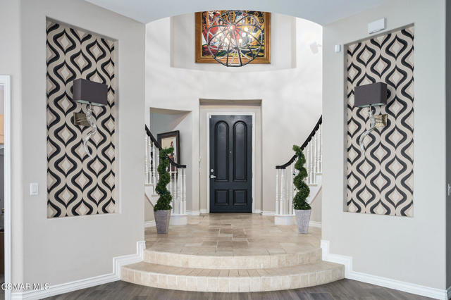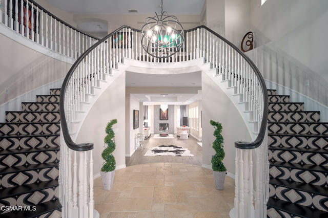 Welcome to an exquisite oasis in the rarely available gated community of Palermo in Dos Vientos, where serenity meets sophistication. This stunning designer home has been completely updated, showcasing a perfect blend of modern elegance and comfort.As you step through the dramatic entry, you are greeted by a striking double staircase adorned with patterned risers, setting the tone for the grandeur that awaits. To your right, an office with French doors opens to a breathtaking outdoor space featuring a newly built modern pool that rivals the finest five-star resorts, not one but two spas, creating an inviting atmosphere for relaxation and entertainment.The open-concept layout boasts breathtaking oversized chandeliers that illuminate the space, seamlessly connecting the entry, dining room, and living room. The living area features premium large wood plank tile flooring and a captivating 3D tiled wall gas fireplace, perfect for cozy evenings.The heart of the home is the all-new modern kitchen, a chef's dream equipped with a stainless steel farmhouse sink, luxurious marble and quartz countertops, and backlit frosted upper white cabinetry. Additional highlights include a pot filler, Sub Zero and Bosch appliances, a walk-in pantry, and jumbo glass pendants gracefully hanging over a massive kitchen island. A unique striped marble dining table attached to the peninsula adds a touch of sophistication, while the wet bar features all-new white cabinetry for your entertaining needs.Convenience is key with a main floor bedroom and bathroom, complete with its own separate, private entry, ideal for guests or multi-generational living. A stylish back staircase leads to the upper level, where you'll find two additional bedrooms, each boasting individual balconies with stunning mountain views.The primary suite serves as your ultimate escape, featuring a massive walk-in closet reminiscent of the finest European boutiques, providing ample space for your wardrobe and accessories. Step outside to discover a Grassy area to frolic and play, and a gorgeous entertaining area equipped with two oversized spas, a sparkling pool with dramatic app-controlled lighting features, a built-in BBQ, and a cozy fireplace surrounded by generous outdoor seating. This space is designed for luxurious gatherings, peaceful evenings under the stars, or simply relaxing in the serenity.Added bonuses include a four-car garage to store your favorite toys and fully owned solar!Escape to the luxury and serenity you so richly deserve in this remarkable home, where every detail has been thoughtfully curated to create an unparalleled living experience. Don't miss the opportunity to deliver this jewel to your client who deserves nothing but the best.Interested in this Listing?