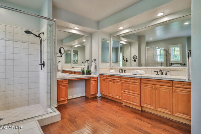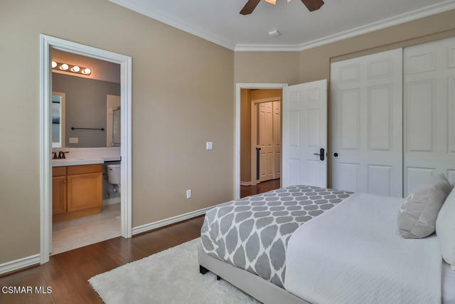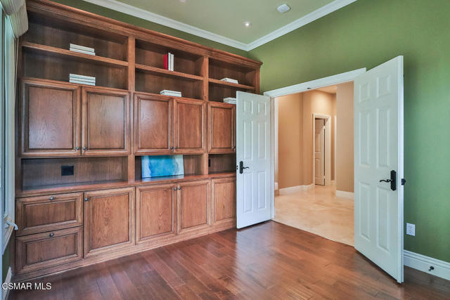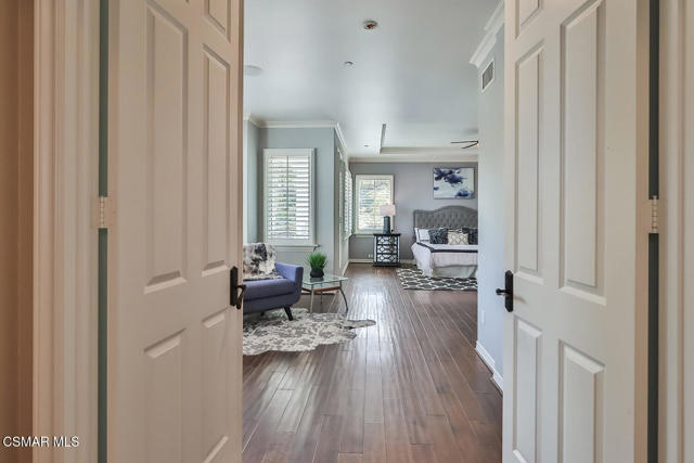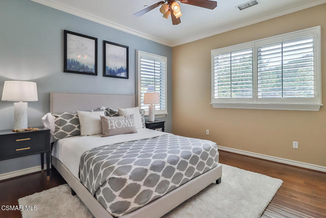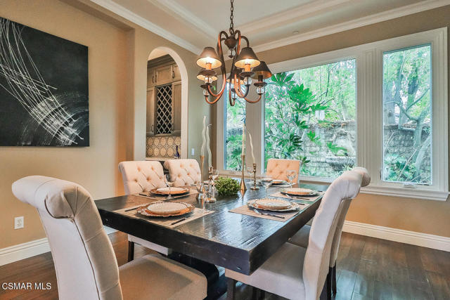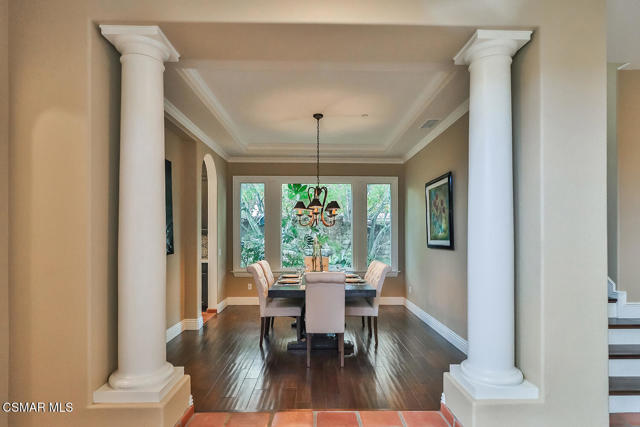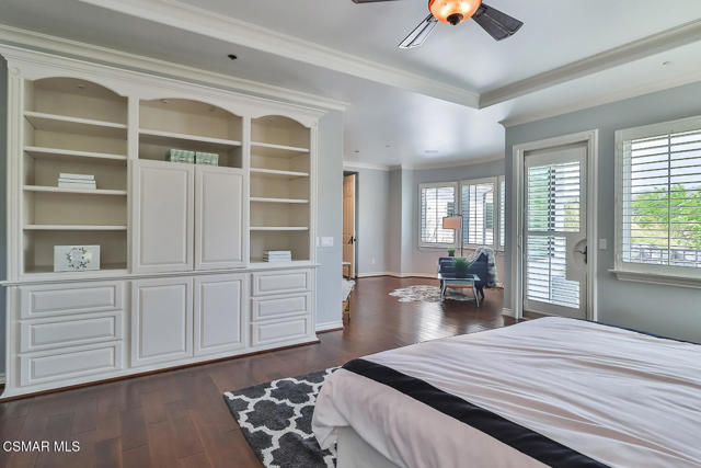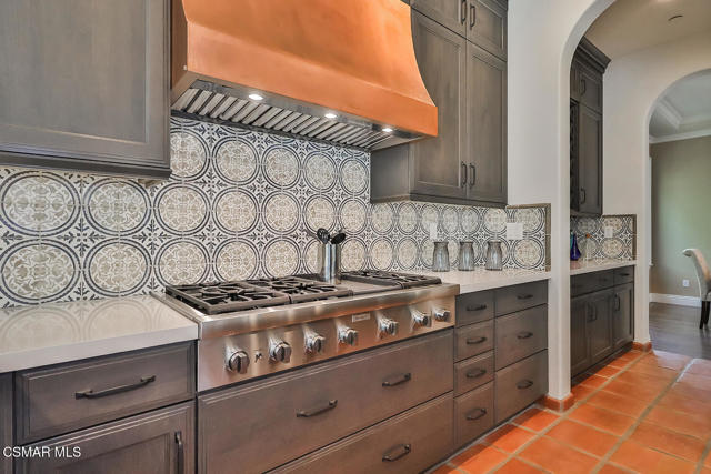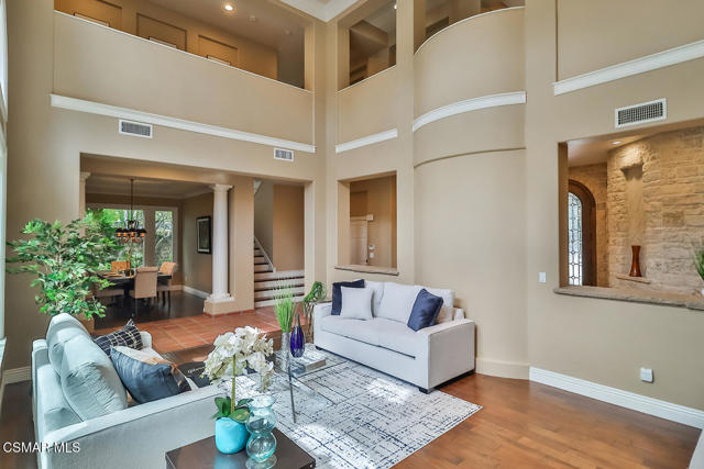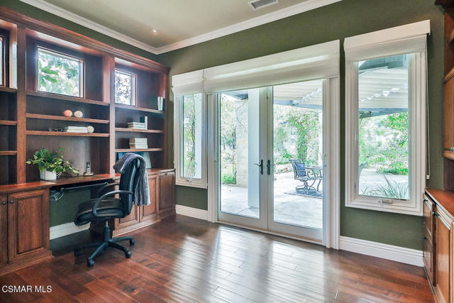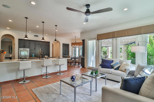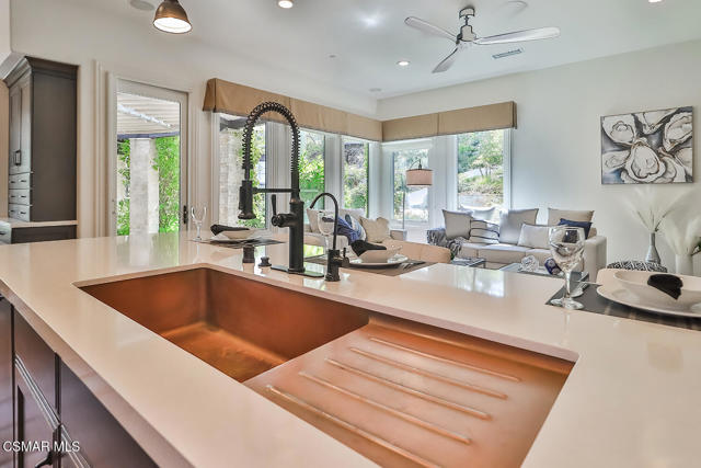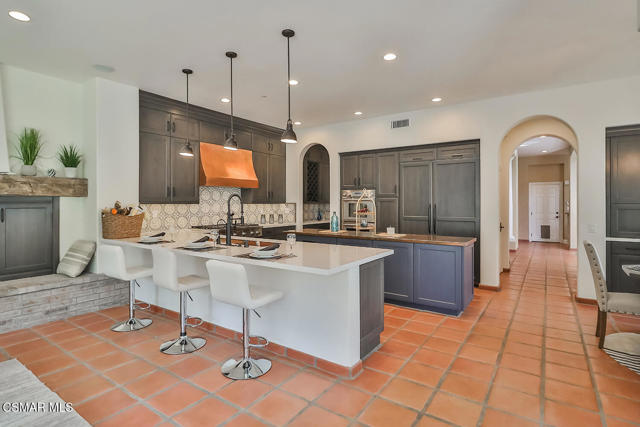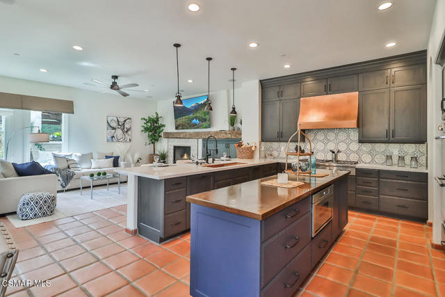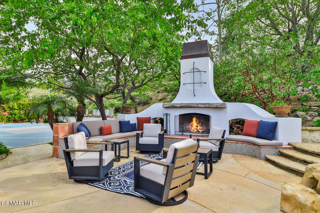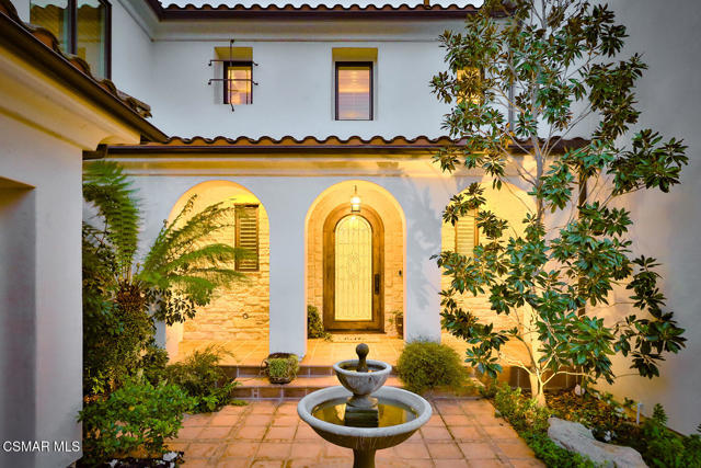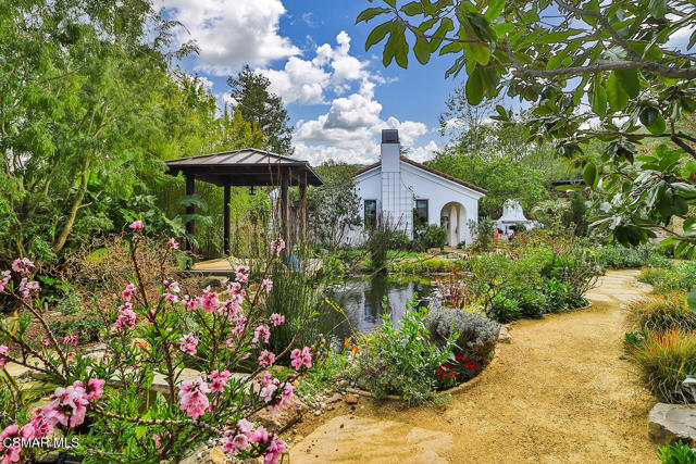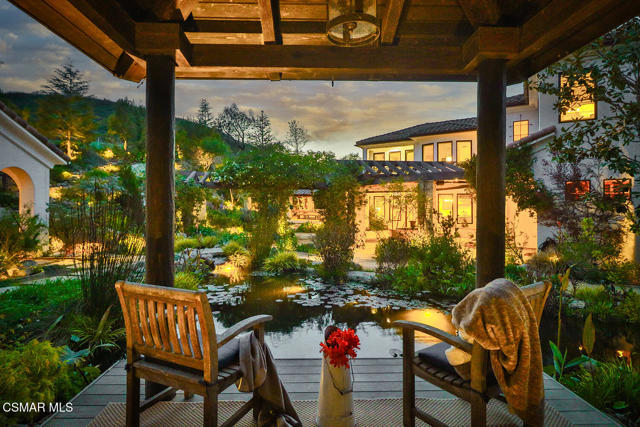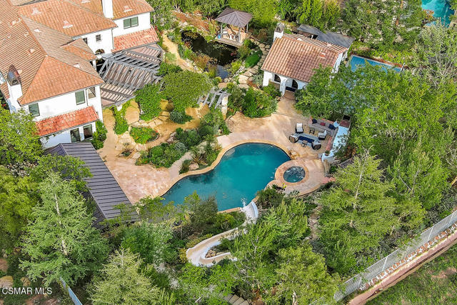 A Rare Gem in Dos Vientos RanchTucked within the prestigious gated enclave of Palermo at Dos Vientos Ranch, this one-of-a-kind estate is a masterful blend of luxury, craftsmanship, and nature. Designed with vision and executed with precision, the home marries the warmth of native California landscape with elegant European influences and a wealth of high-end amenities.From the moment you step inside, you're welcomed by exquisite details--rich dark wood flooring, refined crown molding, custom stonework, and crisp white wood trim accentuating every window. Oversized windows flood the grand living room with natural light, creating a bright, open, and inviting space perfect for relaxing or entertaining.The fully remodeled chef's kitchen is a showpiece, featuring custom cabinetry with Swedish inserts, Cambria Newport quartz countertops, and a harmonious fusion of Spanish Saltillo tile and copper finishes--including the oversized sink, center island, and custom hood. The layout flows effortlessly, making it ideal for both intimate dinners and grand-scale entertaining.Just off the entry, a private home office offers built-in wood shelving and French doors that open to a peaceful garden, where mature fruit trees--peach, nectarine, and avocado--add both beauty and bounty.Yet the heart of this estate lies outdoors. The resort-style courtyard is a true sanctuary, centered around a 13,000 gallon Koi pond (with fish) and a hillside pavilion adorned with Spanish tile and handcrafted stonework. The custom-designed backyard is unparalleled in Thousand Oaks, offering multiple zones for leisure and celebration.Host unforgettable sunset dinners beneath the covered outdoor dining space, complete with Saltillo tile benches, ceiling fans, built-in BBQ, pizza oven, and a striking stone fireplace. Relax in the pebble-bottom pool and spa, take a mindful stroll along hand-built hillside trails, or enjoy a game on your private basketball court.A separate one-bedroom, one-bathroom casita--currently serving as a private movie theater--offers a flexible space for guests, extended family, or creative entertaining.With its impeccable finishes, sun-drenched interiors, and breathtaking outdoor living reminiscent of a European villa, this home is a rare offering for those seeking refined, resort-style living in the rolling hills of Newbury Park.Interested in this Listing?
