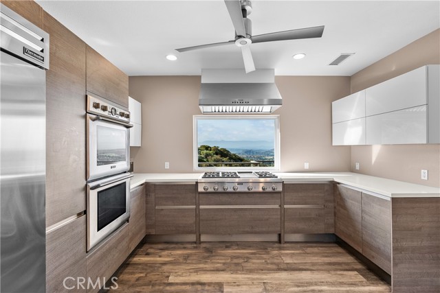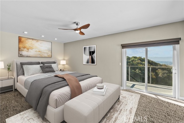 Nestled at the end of a private street with only one next-door neighbor, this exceptional home offers breathtaking valley views from every floor and three expansive balconies. Freshly painted inside and out, it blends modern elegance with ultimate privacy. The open-concept design features a sleek kitchen with Thermador appliances, European cabinetry, and a spacious island, all overlooking stunning views. The second level hosts the primary suite with balcony access, two additional bedrooms, a shared bathroom, and a laundry room. A separate living space with a private entrance and full bath offers rental or guest potential. The third level is built for entertaining, with a massive entertainment room, an additional bedroom, and a large deck with a jacuzzi. Luxury meets efficiency with paid solar, two tankless water heaters, Milgard windows, electric blinds, and individually zoned Nest thermostats. Just five minutes from freeways, shopping, and dining. With 5 bedrooms and 5 bathrooms, this home is the perfect blend of space, sustainability, and sophistication. Don t miss this rare opportunity to own a one-of-a-kind sanctuary in a prime location!Interested in this Listing?