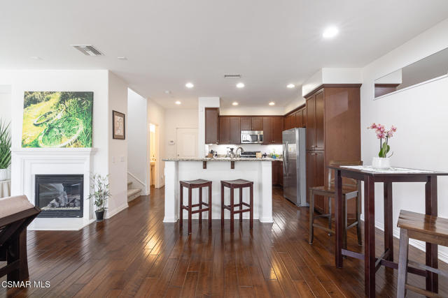 Experience the best of Newbury Park with Oak Terrace living in this stylish and private end unit! Bathed in natural light, this home features high ceilings, hardwood floors, and an open floor plan perfect for modern living. The inviting living room with a fireplace flows into the dining area and a chic kitchen with granite countertops and Whirlpool Gold stainless steel appliances. Step out to your private patio for easy indoor-outdoor enjoyment. Upstairs, the spacious primary suite offers a relaxing sitting area and an ensuite bath with a separate tub/shower and a large walk-in closet. Two additional bright bedrooms and a well-equipped laundry room with utility sink, complete the second floor. Added perks include a Pelican water filtration system, ADP security system, and low HOA fees. Residents enjoy community amenities like a half-court basketball court and playground, plus the convenience of nearby hiking and biking trails, shopping, dining, and easy freeway access.Interested in this Listing?