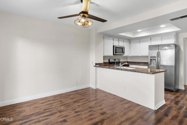 Nestled high in the peaceful Green Meadows community, this thoughtfully renovated 3-bedroom, 2-bathroom home is designed for easy, elevated living. Light pours into the open floor plan, where soaring ceilings, a gas fireplace, and a fully upgraded kitchen set the stage for everything from lively gatherings to quiet mornings at home. Downstairs offers a versatile bedroom and full bath--perfect for guests or a home office--while upstairs, two bedrooms with fresh new carpet, including a primary suite with dual closets and a modernized bath, offer plenty of space to recharge. Step outside to a private patio that backs to the lush greenbelt, where you can savor mountain views and the California sunshine all year long. Community amenities like a sparkling pool, inviting clubhouse, and expansive green spaces make every day feel like a retreat, while nearby shopping, dining, parks, and trails keep you connected to all the essentials.Interested in this Listing?