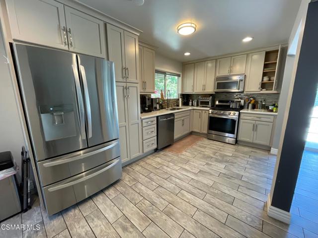 Stunningly remodeled from inside out with high-end appointments and exquisite attention to detail. Entering the property, a garden path leads to a freshly landscaped courtyard. Custom French doors give entry to an open and contemporary floor plan, complete with fireplace and breakfast bar. Kitchen features stainless steel appliances, granite counters w/ tile backsplash. Laundry room with cabinet storage. Master bedroom has huge walk-in closet with en suite bathroom featuring new custom tile shower, granite countertops and double vanity. New hardwood flooring in living spaces and new carpet in the bedrooms. Backyard space includes mature landscaping mixed w/ vibrant new additions. Living room features sliding glass door opening up to a covered patio area. Close to shops, restaurants, hiking, top-rated Conejo Valley schools, and easy access to Hwy101.Interested in this Listing?