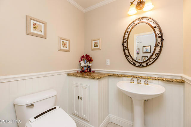 This beautiful five bedroom Oak Park home is located in Ventura County and it sits on a large corner lot at the top of Regency Hills, backing to the privacy of the Santa Monica mountains. The outdoor area is amazing - the grassy backyard is embraced by beautiful gardens, fruit trees and peaceful mountain views. No neighbors to the back - only one neighboring home to the side. High ceilings (9ft+) throughout. The first floor includes an ensuite bedroom. The kitchen opens to the family room and both look out to the picturesque backyard. The kitchen has granite countertops, stone backsplashes and stainless steel appliances, including a newer cooktop and dishwasher. The family room features a cozy fireplace. The powder room is tastefully done with wainscoting and granite counter tops. Four carpeted bedrooms are upstairs. The primary suite looks out over the backyard garden and includes a walk-in closet, two dressing areas, and a luxurious soaking tub. The home features hardwood flooring, crown molding, maple cabinetry, cased windows, and newer carpet. Solar is owned. Newer water heater. Three car garage. Award winning school district. Roughly one mile to Medea Creek Middle School and Oak Park High School. Up the street from Deerhill Park which has lighted pickle ball, tennis and basketball courts in addition to soccer and baseball fields as well as two playgrounds. Close to shopping, hiking trails, splash pad and dog park. 13 miles to Malibu beaches. Beautiful home, great location, see it before it's gone!Interested in this Listing?