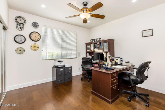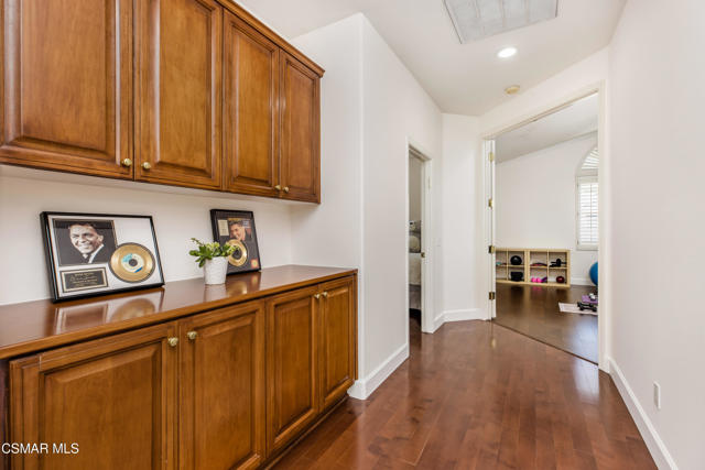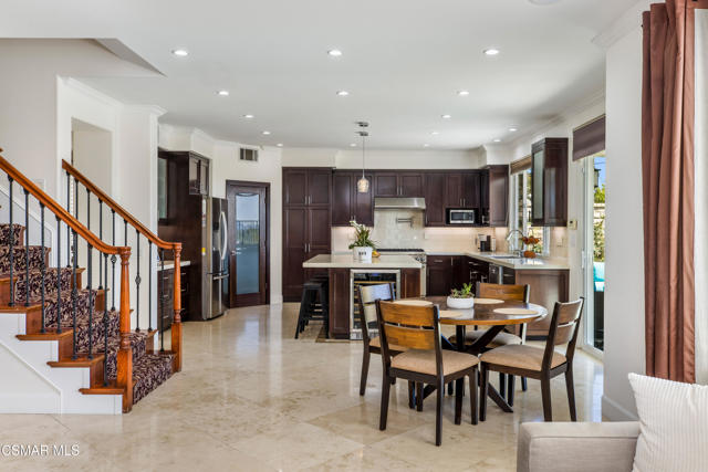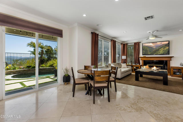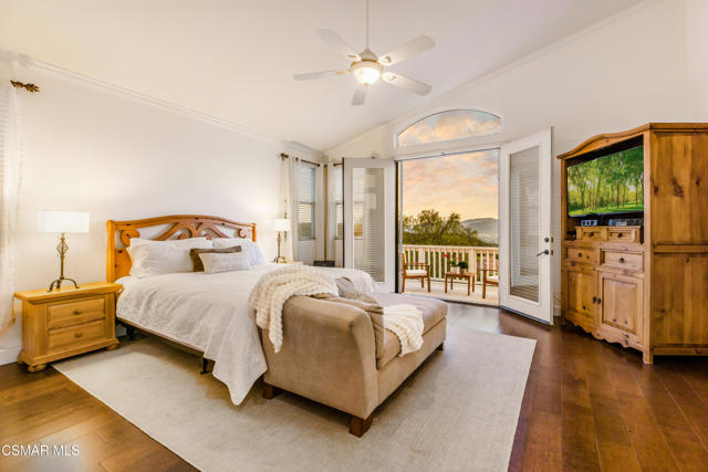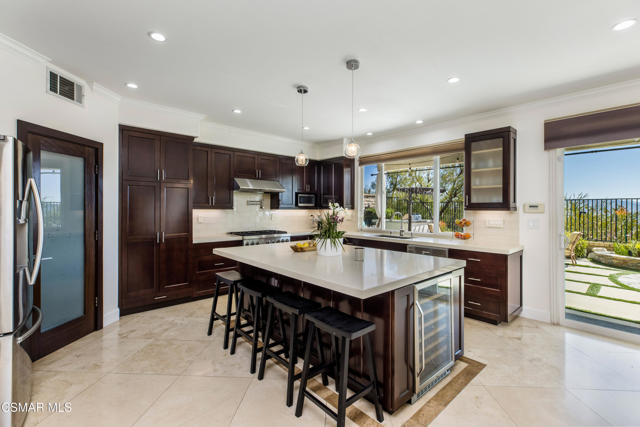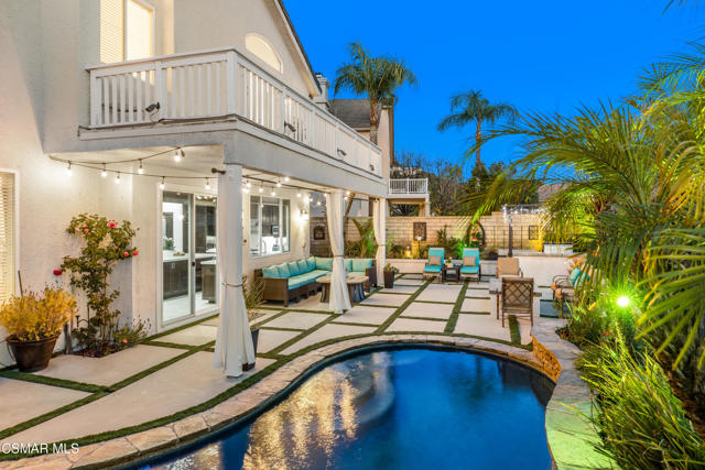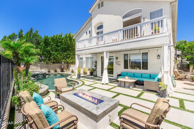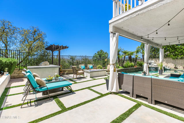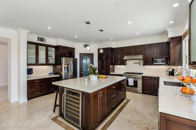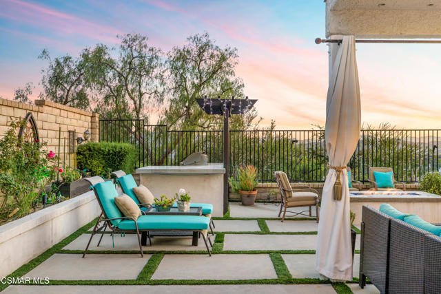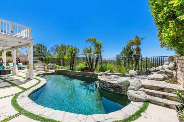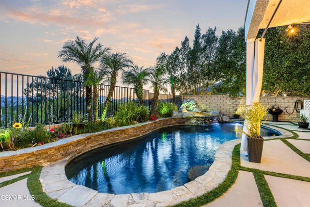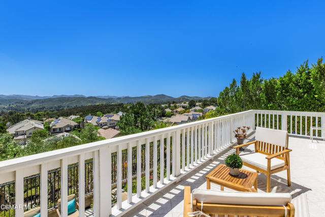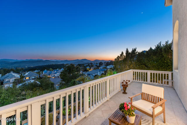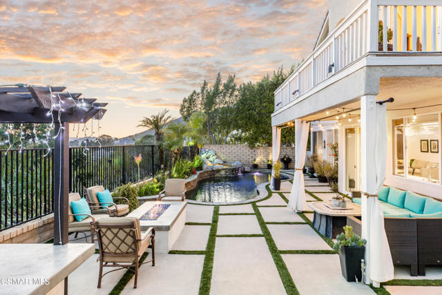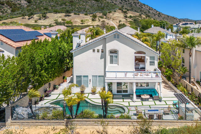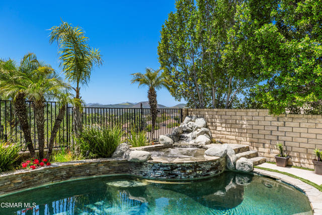 If you're looking for a gorgeous turn key property with VIEWS, look no further! Just across the LA/Ventura County Line, this Oak Park beauty is located in the prime development of Regency Hills. All ceilings are 9ft + and in addition to the four bedrooms upstairs, there is a first floor ensuite guest bedroom. The kitchen was recently redone with newer appliances including a stainless steel refrigerator, Thermador range, Miele dishwasher, custom cabinetry and Caesar Stone counter tops. There's also a built in wine refrigerator, walk in pantry and more! The kitchen overlooks the stunning backyard and opens to the breakfast area and expansive family room. The upstairs features a luxurious primary suite with French doors leading to an enlarged balcony that overlooks the backyard and showcases the mountain views: the sunsets are incredible! The spa-like primary bathroom includes a soaking tub and a double entry shower. Dual sinks and separate dressing areas for two. The large upgraded cherry wood two sided closet features an entry door for both of you! There are three additional bedrooms on the second level, two are ensuite and the other is currently being used as an office. The additional bonus room has a closet and can be used as a bedroom, work out room, music room, etc. Cherry wood flooring, travertine and tile can be found throughout the home. The entertainer's style backyard was redone in 2022 and the fire pit and additional gas line was added at that time. Outdoor BBQ area, lounging area and ample seating under the shade of the balcony provide plenty of spots to relax in when you're not enjoying the Pebbletec pool or spa with waterfall. Don't miss the goldfish pond at the entrance to the house! This home is located in the perfect spot, not only is it in a great location within the neighborhood, it's less than a mile to Medea Creek Middle School and Oak Park High School - The Oak Park Unified School District is highly rated and provides a '' private school education in a public school setting''. Located in Ventura County, it's just two miles to shopping and 13 miles to Malibu (beaches). Deerhill Park is two blocks away and has lighted pickleball, tennis and basketball courts as well as two playgrounds, a soccer field and a baseball field. Hiking trails, dog park, and splash pad are all close by!Interested in this Listing?