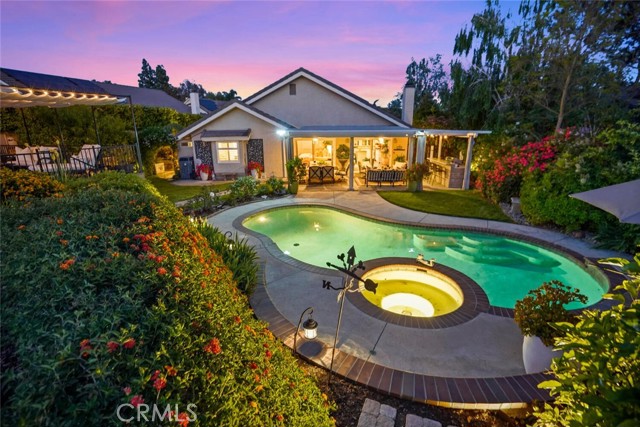 Stunning Single Story Canyon View Home with Pool & Serene Outdoor Living! Nestled in the tranquil hills this welcoming 3 bedroom, 2 bath home (plus 1/2 bath outside) offers timeless appeal and effortless indoor-outdoor living. The thoughtfully designed floor plan features vaulted ceilings in the living, family, and primary bedrooms, rich maple wood floors, and a warm, comfortable flow from room to room. The spacious primary suite includes his-and-hers walk-in closets, spacious primary bath including plenty of storage and a dual walk-in shower. The backyard is a true retreat complete with a sparkling pool, jacuzzi, built-in BBQ, large entertaining deck, covered patio, and outdoor bathroom all overlooking sweeping canyon views that create a peaceful, private escape. Additional highlights include paid solar panels, an EV charger, two storage units, and four fully enclosed garden beds designed to keep your veggies safe from squirrels and other critters. The yard also includes a few fruit trees, enclosed grapevines, and a fenced dog run tucked away on the side of the home. Located in the highly sought-after Oak Park school district and just 20 minutes to the iconic beaches of Malibu, this home offers the perfect balance of peaceful hillside living and coastal access. Comfortable, classic, and full of charm this home offers everyday ease in a beautifully natural setting.Interested in this Listing?