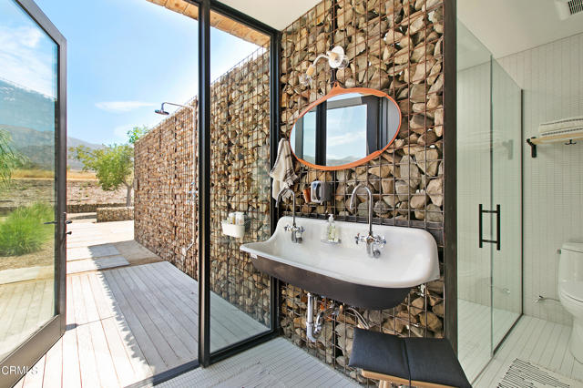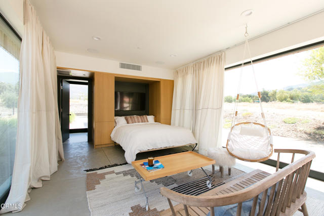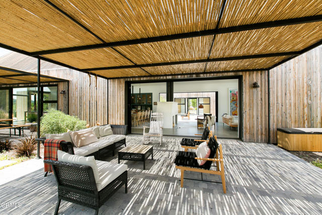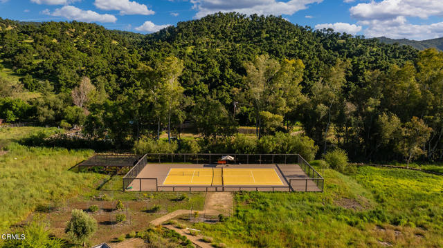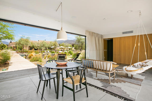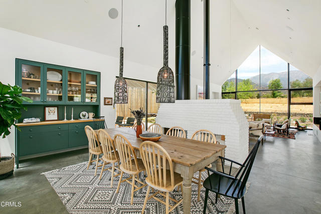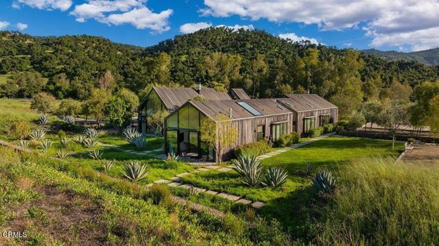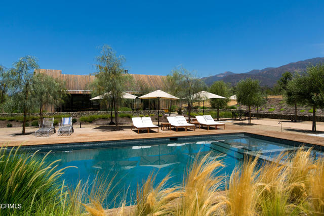Dee Dow Ranch is a stylish, luxurious 10-acre Scandinavian-modern estate, nestled in the Upper Ojai Valley with panoramic mountain views. The unique design mixes elements of modernism, such as glass walls, soaring ceilings and retractable doors combined with earthy materials, like Canadian white oak and concrete floors, vertical barn-style cedar siding, Brazilian Ipe wood decking and gabion stone facades. The collaboration between whimsical creativity and an undeniable cool factor never loses sight of its immersion in the wild and natural Upper Ojai setting of the Topa Topa Mountains. The estate includes a main house, a guest cabana, a glorious 55' pool & spa area, a private tennis court, exquisite landscaping, a playground, a well and a bocce court. The heart of the property is a 4700 sqft 4br/4.5ba modern farmhouse blends Scandinavian design elements with California flair. Interiors are awash with natural light that streams through expansive windows and doors, emphasizing open, airy spaces and seamless indoor-outdoor living. A striking white brick fireplace stands as a centerpiece, dividing the spacious living area from a gourmet kitchen and dining space that comfortably seats twelve. Natural flow from the indoor spaces to the expansive deck and covered porch create easy transitions for lounging by the pool or dining al fresco. The kitchen features a large, soapstone island, high-end appliances, and custom cabinetry in a cool blue-green hue. Bedrooms occupy a separate wing, all with plenty of space, and each bedroom features its own uniquely designed bathroom and a beautiful private view. Additionally, this wing features a cozy TV lounge with a projector and 110 inch screen. The guest cabana is truly unique, made almost entirely out of rock, wood, and steel, in a sleek modernist architectural expression. Views are in abundance from wide retracting doors on each side of the bungalow and a queen size pull-down bed folds out of the way to make the space roomier during the day. There is a beautiful rock bathroom & kitchenette.Two decks on opposite sides of the pool draw the guest cabana and the main house into a beautiful symmetry of communal space. he sprawling grounds feature lush lawns, agaves, garden beds, and a eucalyptus grove. This is more than a home; it's a masterpiece of serene sophistication. Immerse yourself in the timeless beauty & pure relaxation of this luxurious retreat that makes everyday life feel like a grand celebration.Interested in this Listing?