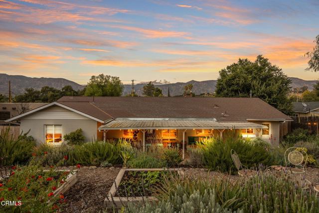 Welcome to Casa Mariposa, a timeless haven offering a rare and authentic experience of the Ojai life! The property offers a ranch-like setting and a Sunset Magazine feel with its natural charm and abundant outdoor spaces. The house itself, with its 3 thoughtfully designed bedrooms, embodies the perfect blend of rustic charm and comfort. Each room is carefully appointed to create a tranquil and cozy retreat, allowing you to escape the demands of the world and enjoy a more relaxed pace of life. The living room exudes warmth and character, highlighted by a charming rock fireplace that is perfect for chilly evenings. The enchantment continues as the expansive backyard beckons you to explore its whimsical wonders. This garden paradise is a true sanctuary, featuring an array of plants, flowers, raised garden boxes, and fruit trees that seem to have sprung from the pages of a storybook. Enjoy outdoor living with multiple covered porches, including the pergola shaded dining area overlooking the terraced backyard & mountain views. Stone stairways w/railings lead to beautiful views of Ojai's famous Topa Topa Mountains! In addition, there is a modern gas fire pit, a perfect gathering spot for evening conversations, star gazing, or simply losing yourself in the flickering flames. Casa Mariposa is a place where the hustle and bustle of the modern world fade away, allowing you to savor life's simple pleasures, all while being close to downtown Ojai, where you can easily explore the town's vibrant arts scene, boutique shops, and delectable dining options. In this unique haven, you can truly savor the true and rooted essence of Ojai, making it a place you'll want to call home for generations to come.Interested in this Listing?