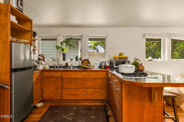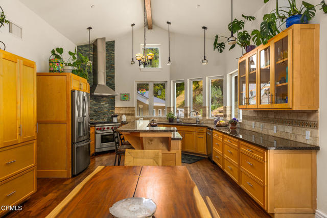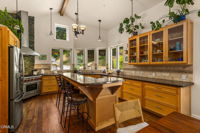 Welcome to this incredible home in Ojai nestled near the Matilija Canyon among mature oak trees with creeks all around set on over 2 acres. This is not just a home, it's a lifestyle embracing all the best that Ojai has to offer. With bubbling creeks all around, hot springs & hiking trails minutes away and just 5 miles to downtown Ojai. This home has the perfect combination of nature and solitude with Ojai's fabulous amenities just minutes away. The main house (3,207 sq ft) has double-height vaulted ceilings with wood beams and a stone fireplace, there are 4 bedrooms, 3 bathrooms and an office which has magical energy encased by beauty. The primary bedroom has a spectacular setting with a balcony surrounded by mature oak trees, and a huge walk-in closet and sauna. The gourmet kitchen will not disappoint complete with a 48' Wolf range and large center island. The guest house is 1 bedroom and 1 bath with a full kitchen, family room and patio area and then there is another guest suite complete with its own kitchen. Use this as your own family compound or rent out 1 or both of the guest homes. This whimsical property, nestled in Ojai's breathtaking landscape, offers the perfect place to call home. Why wait to start living your dream? The lifestyle you've been longing for is right here!Interested in this Listing?