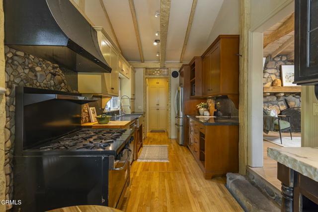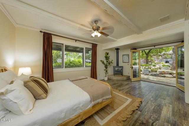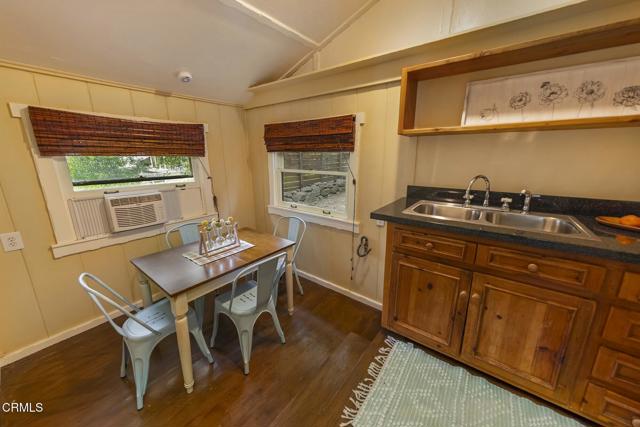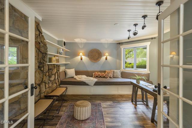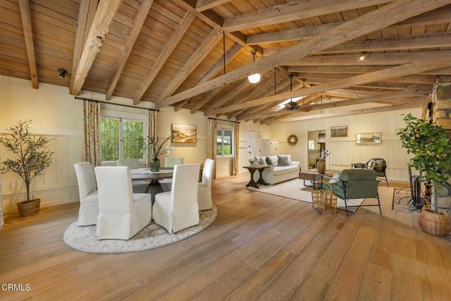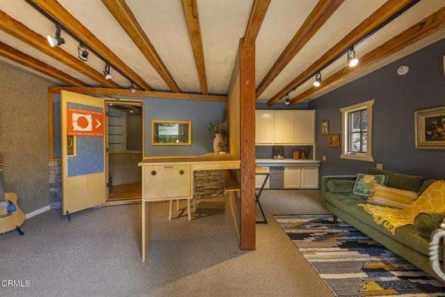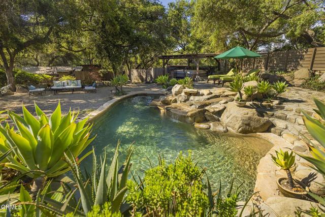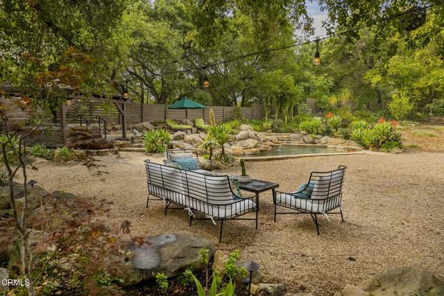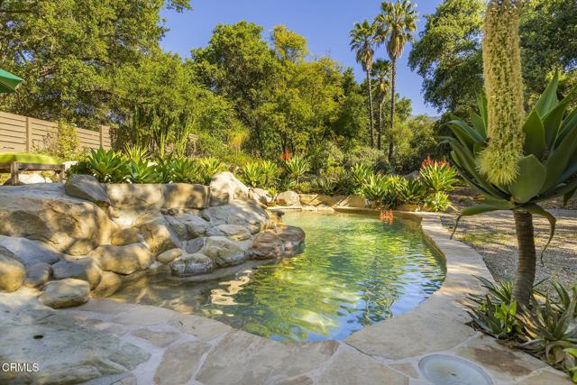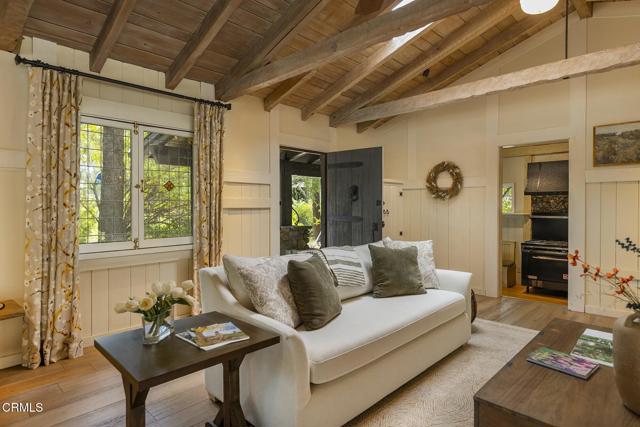 Discover a one-of-a-kind property in Ojai's highly desirable East End. A rare offering full of character, comfort, and creative flexibility. Whether you're seeking a private retreat, a multi-generational compound, or a versatile live-work space, this special property is brimming with possibilities.More than just a retreat, this is a true piece of Ojai history. One of the first homes ever built on Garst Lane, it was home to the Garst family, for whom the private lane is named. Originally known as the Topa Topa Lodge, the log-style structures were built to resemble the Bright Angel Lodge of the Grand Canyon and served as a tranquil escape beneath the iconic Topa Topa Mountains. That same spirit of serenity and creativity lives on today, woven into the property's thoughtful layout and timeless energy.The property features a two-bedroom, two-bath historic split-log main house with vaulted ceilings, a wood-burning fireplace, beautiful wood flooring, curated artistic details, and a spacious galley kitchen with generous cabinetry. A welcoming den and a charming basement wine cellar enhance the home's warmth and character.Two detached guest cottages offer privacy and flexibility. The front cottage is a two-bedroom, one-bath unit with a private patio. The rear cottage is a studio-style retreat with a bathroom, kitchenette, and fenced outdoor area. A separate laundry room and outdoor shower offer extra functionality for guests or extended stays.For those working from home or in creative fields, the detached office features two dedicated workspaces and a professionally designed 4' x 10' sound isolation booth, perfect for podcasters, musicians, or digital creators. The adjacent 2 car garage adds useful storage or workshop potential.Outdoors, enjoy shaded mature landscaping and a fully fenced backyard designed for relaxation or entertaining. Complete with a custom stone pool and waterfall, hot tub, fire pit, and a spacious courtyard parking area accommodating up to ten cars.This property has hosted intimate weddings, retreats, family gatherings, and creative workshops. A truly versatile space with a rich history in one of Ojai's most coveted neighborhoods.