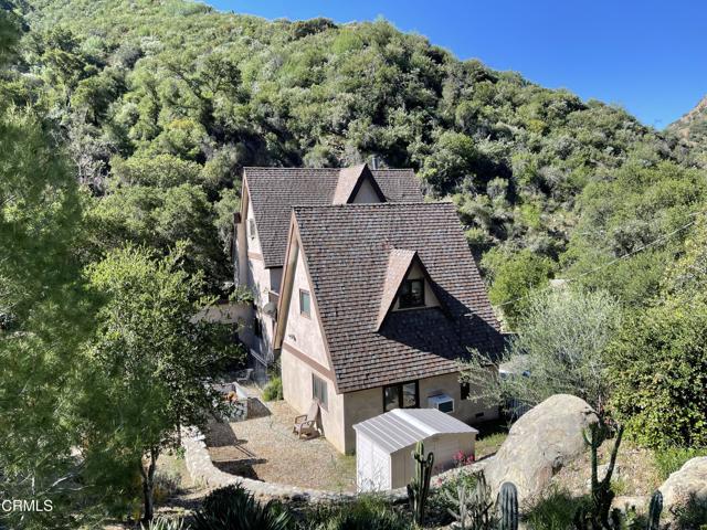 Tucked away in a private canyon a short drive from downtown Ojai, you will find a historical homestead site from the 1800s. The property offers a bit of natural paradise, a Bavarian-style mountain chalet with a year-round flowing stream from an uphill artesian spring. Overlooking the North Fork of Matilija Creek, this is truly a get-away to the serenity of rushing waters and birdsong. The custom-built home offers oak flooring throughout, 2 bedrooms, 2 full bathrooms, and additional living space in a converted garage studio. Built in Bavarian style, one enters a ground floor bedroom with full bath, and doors that open to a deck overlooking the creek below. The 2nd floor living space includes the kitchen and dining area, and another deck to enjoy nature's beauty. A stairway leads to the top floor loft bedroom. Outside you will find a concrete patio with goldfish pond, and above a large koi pond, as well as several picnic areas. The one-hundred-year-old stone walls add to the quaintness. For those who enjoy hiking, this is your property. It is enclosed within the Los Padres National Forest with ample areas for exploration. This property holds a lot of history and is truly one-of-a-kind. You must see it to believe it.Interested in this Listing?