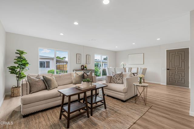 This charming manufactured home offers a spacious and inviting layout featuring a beautiful dining and living room with laminated floors and two elegant sliding doors that flood the space with natural light. The open-concept kitchen feels majestic with a stunning island, lovely white cabinets, a double sink, and an additional area that can serve as a second dining space or a cozy family recreational area. Between the living room and kitchen, you'll find a convenient laundry room with access to the garage, and a thoughtfully designed bathroom with two entrances--one from the bedroom and another for guests. Toward the back of the home are two perfect bedrooms, one with a closet and access to the shared bathroom, and the master bedroom featuring its own private bathroom with double sinks and a very nice shower. The kitchen opens up to a lovely terrace, perfect for relaxing or entertaining, and the home includes a covered two-car parking space.Interested in this Listing?