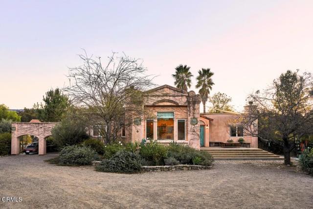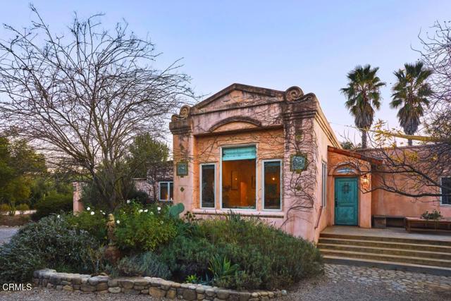 Stargate Sanctuary -- A Rare, Gated Compound in Ojai's East EndStargate Sanctuary is a magical, self-sustaining retreat nestled in Ojai's prestigious East End -- a Mediterranean-style gem designed by renowned architect Marc Whitman. Newly refreshed and surrounded by breathtaking mountain vistas, this 1.73-acre gated estate offers a seamless blend of timeless elegance, natural abundance, and serene seclusion.The main residence, a 1,410 sq ft architectural jewel, features an open-concept layout with soaring, beam-accented ceilings and walls of windows that flood the space with natural light, creating harmony between indoor and outdoor living. Two private bedrooms are situated at opposite ends for optimal privacy and comfort.Ideal as a family compound or retreat space, the property includes two beautifully designed detached guest units (536 sq ft and 700 sq ft), perfect for visiting friends, wellness retreats, or multigenerational living.Beyond its aesthetics, Stargate Sanctuary is built for both inspiration and preparedness -- a private paradise ready for the times, with vegetable gardens, gated entrances, and fully fenced grounds. Chickens, goats, or other animals can live in style too, thanks to charming stucco outbuildings designed just for them.The land itself is a living apothecary and orchard, featuring a remarkable variety of fruit trees including lemon, lime, orange, grapefruit, plum, peach, apricot, grape, avocado, mulberry, fig, cherimoya, persimmon, cherry, pear, guava, and passionfruit. A lush collection of medicinal herbs thrives here as well: elderberry, rosemary, silver sage, wormwood, mugwort, helichrysum immortelle, oregano, and thyme.Everywhere you turn, the scent of jasmine, honeysuckle, gardenia, roses, lavender, lemon verbena, and geraniums fills the air -- making every walk on the property a sensory experience.This sanctuary is within walking distance to award-winning schools, yet tucked far enough from town to offer peace and privacy. Hop on a bike and be in town in minutes. The layout is ideal for retreats, artists, nature lovers, or those simply seeking peace without sacrificing style.And in a rare and significant advantage: this lot now qualifies for water well permits, thanks to its location atop a newly identified aquifer beneath the East End -- offering both sustainability and future security.Whether you're seeking a soulful escape, a creative refuge, or a sustainable compound with room to grow aInterested in this Listing?