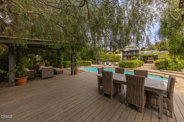 A rare offering in Ojai's coveted East End, 4158 Grand Avenue is a soulful 5-bedroom, 6-bathroom estate tucked behind mature trees and citrus groves for a sense of seclusion and quiet. Spanning over an acre, this serene retreat blends historic charm with modern luxury in one of the valley's most sought-after enclaves.Inside, sunlit interiors and handcrafted architectural details create a sense of warmth and timelessness. Five fireplaces anchor expansive living spaces, ideal for both intimate gatherings and large-scale entertaining. The generous primary suite is a true retreat, featuring dual en-suite baths, a private sauna, and abundant closets. Each additional bedroom includes its own en-suite bath, offering comfort and privacy for family and guests.Outdoors, enjoy lush, manicured grounds with a sparkling pool, spa, and a shaded patio for dining al fresco beneath the trees. The detached three-car garage includes an art studio, laundry area, and full bath--perfect for creative pursuits or poolside entertaining. A charming one-bedroom ADU offers flexibility for guests or income.Moments from Ojai's farmers markets, trailheads, and celebrated restaurants, this is a home for those who value beauty, privacy, and place.Interested in this Listing?