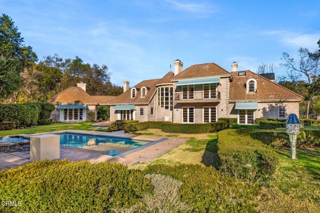 An Ojai French-Country Estate - a dream property that awaits your arrival and personal touch. Located on a quiet and secluded street in the heart of Ojai, with the perfect balance of convenience to downtown yet also the feel of a private retreat. As you turn into the private drive and pass through the gates, you immediately feel the grandeur of the estate with a residence spanning just under 5,000 square feet of opulent living space. The meticulously manicured lot spans just over an acre, providing ample space for relaxation and enjoyment both in doors and out.While the house exudes character and elegance, including grand ceiling heights, it presents an opportunity for updating to further enhance its allure and modernize its features. Embrace the chance to transform this expansive architectural estate into your own lavish retreat, marrying timeless charm with contemporary comforts.Outdoor entertaining reaches new heights with a sparkling pool and spa, accompanied by a charming pool house boasting an additional bathroom and a fireplace, creating an ideal setting for hosting gatherings and enjoying leisurely afternoons. A truly exceptional piece of Ojai real estate!Interested in this Listing?