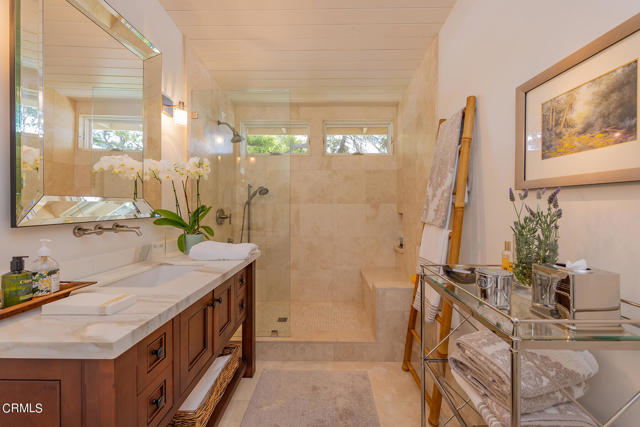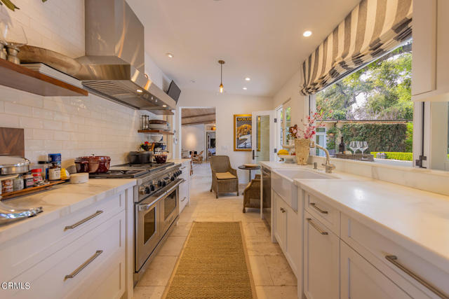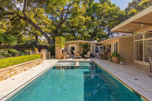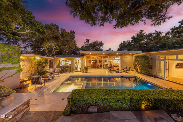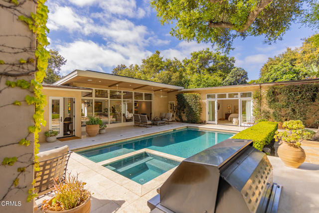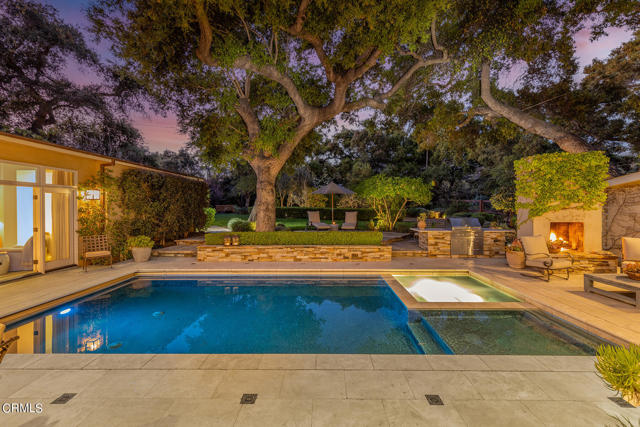 Originally designed by Austin Pierpon, located in the Historic Arbolada ares in City of Ojai. This remarkable home has been fully remodeled with incredible attention to detail and an eye towards upscale living. This includes unique touches like the dining room's antique Chapman light fixture, French casement windows for unobstructed views, and Ashley Norton door hardware throughout. Vaulted ceilings, hardwood and travertine floors, wood-burning or gas fireplace, walk-in pantry, duel-fuel Wolf range, Carrera Gold marble counters, and large windows bathing every room in natural light are just a handful of this home's alluring features. The media room, two laundry rooms, well-designed layout, and luxurious primary suite with a spa-like bath with two vanities and a large, walk-in closet are also sure to impress. The exceptional outdoor living areas include a swimming pool with spa, Baja shelf, and automatic cover, patio fireplace, built-in Viking grill, bar, dog runs, family orchard, large lawn area, and multiple patios and seating areas. With sewer connection.Interested in this Listing?