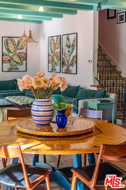 Location, location, location!!! Tucked away in the heart of downtown Ojai, In close proximity to The Ojai Playhouse, Libby Park, Three Birds Coffee and much more. This Spanish stunner features an open floor plan concept, a true entertainer's delight. Effortlessly spend time with all your guests in your spacious custom kitchen. Gathering around your grand island while entertaining throughout the carefully curated space. Your tall ceilings and French doors welcome bright natural light. Incorporated thoughtfully, the flow of your outdoor space seamlessly off the kitchen and living rooms adds an extension of usable gathering spaces for nightcaps and conversations while enjoying the fresh Ojai air. Your primary bedroom suite is complete with dual spacious closets, balcony and fireplace. A second junior suite bedroom offers good privacy separated by a long hall also complete with a balcony, French doors, and beautiful wood ceiling. Colorful Spanish tiles accompanied by warm architectural details lend a hacienda-inspired charm, alongside providing idyllic settings for outdoor relaxation and entertaining alike. Cozy up by one of the two fireplaces or enjoy the convenience of a central HVAC system with zones for personalized climate control. Enjoy the den like atmosphere in your remolded attached garage. Tesla charger included. The tonal and many other bonuses could possibly be included as well. Experience elevated living in an unparalleled location.